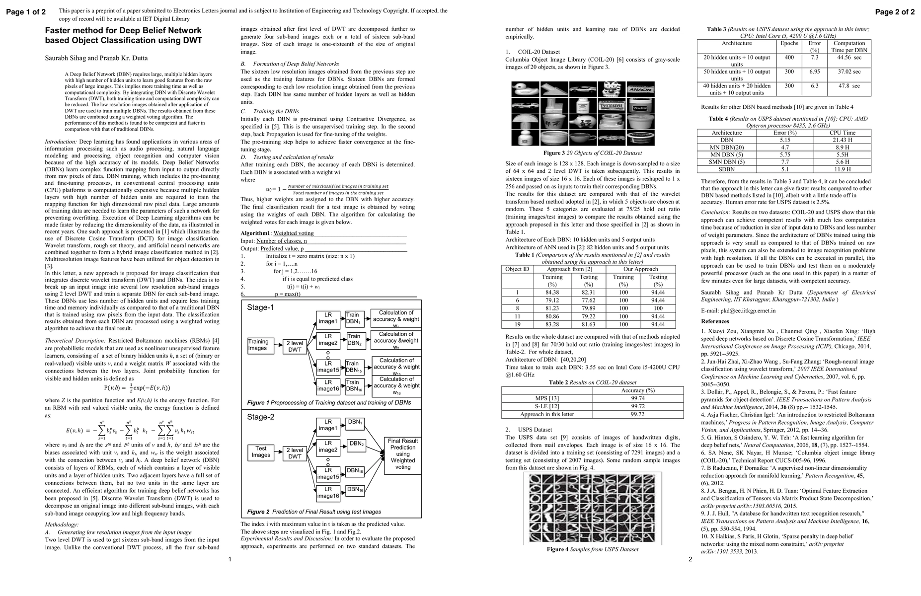 A new method combines Deep Belief Networks with Discrete Wavelet Transform to speed up object classification, reducing training time and computational complexity, while maintaining competitive performance.
