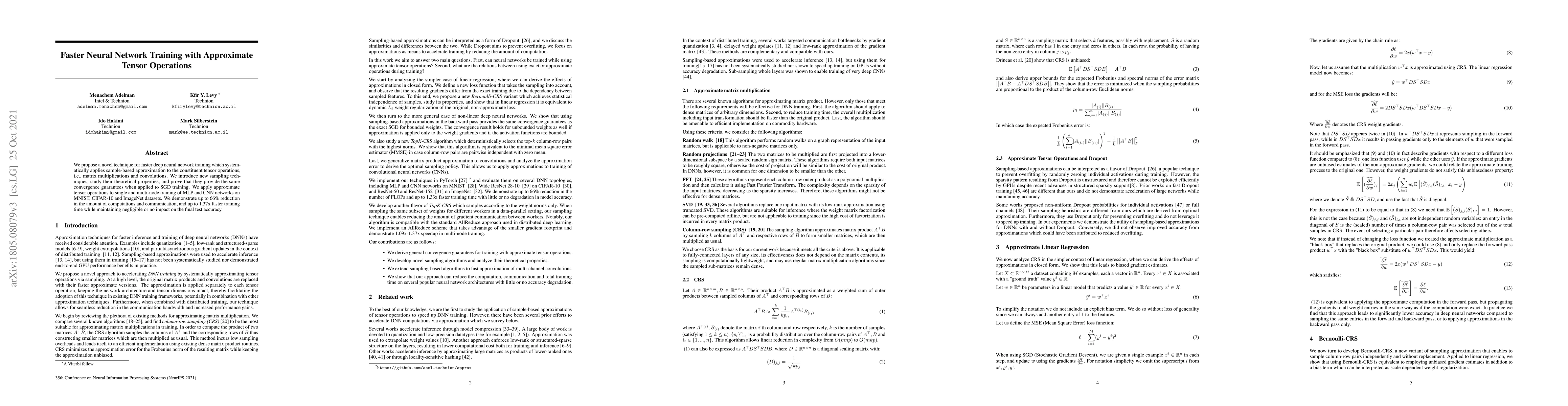 This paper introduces a novel technique for faster neural network training by using sample-based approximations for tensor operations, achieving up to 66% reduction in computations and communication, and 1.37x faster training times with negligible impact on test accuracy. Theoretical analysis confirms convergence guarantees similar to standard SGD training.