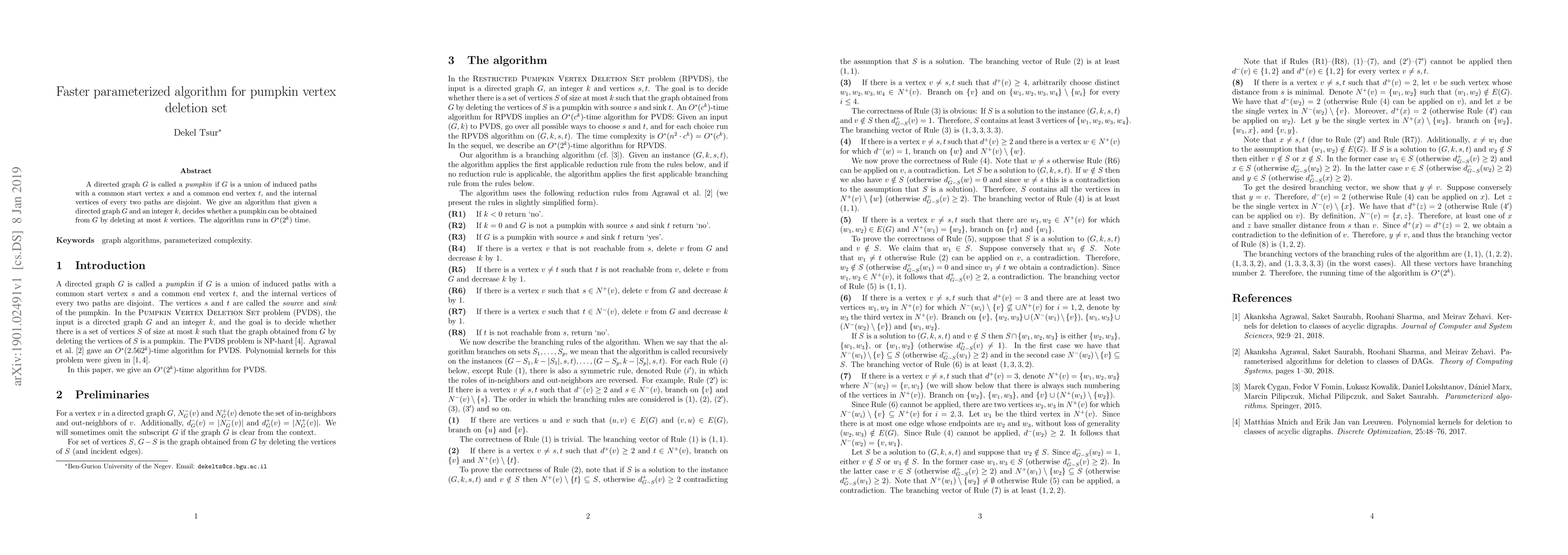 A directed graph $G$ is called a pumpkin if $G$ is a union of induced paths with a common start vertex $s$ and a common end vertex $t$, and the internal vertices of every two paths are disjoint. We give an algorithm that given a directed graph $G$ and an integer $k$, decides whether a pumpkin can be obtained from $G$ by deleting at most $k$ vertices. The algorithm runs in $O^*(2^k)$ time.