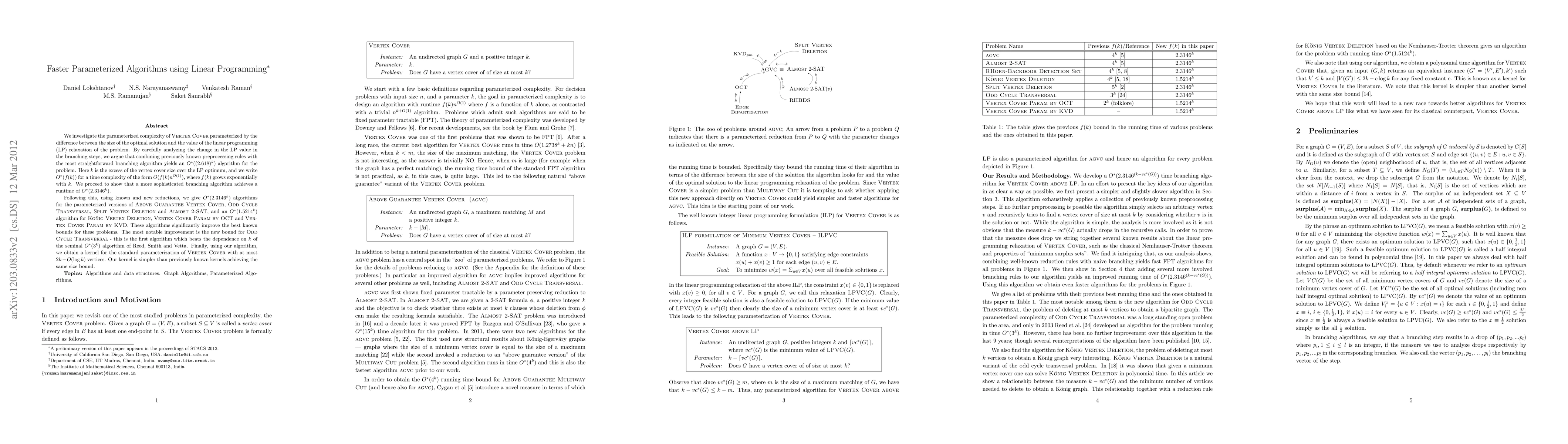 This paper presents improved parameterized algorithms for several NP-hard problems, notably achieving an $O^*(2.3146^k)$ runtime for Vertex Cover parameterized by $k$, the excess of the vertex cover size over the LP optimum. The work also introduces the first algorithm to outperform the $O^*(3^k)$ bound for Odd Cycle Transversal and provides simpler kernels for standard Vertex Cover.