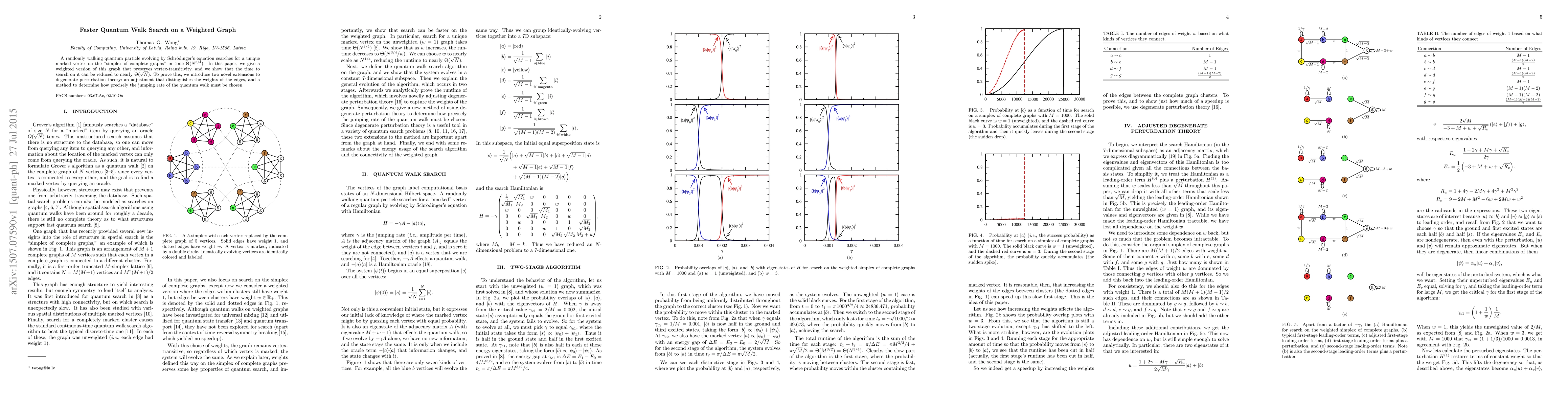 A randomly walking quantum particle evolving by Schr\"odinger's equation searches for a unique marked vertex on the "simplex of complete graphs" in time $\Theta(N^{3/4})$. In this paper, we give a weighted version of this graph that preserves vertex-transitivity, and we show that the time to search on it can be reduced to nearly $\Theta(\sqrt{N})$. To prove this, we introduce two novel extensions to degenerate perturbation theory: an adjustment that distinguishes the weights of the edges, and a method to determine how precisely the jumping rate of the quantum walk must be chosen.