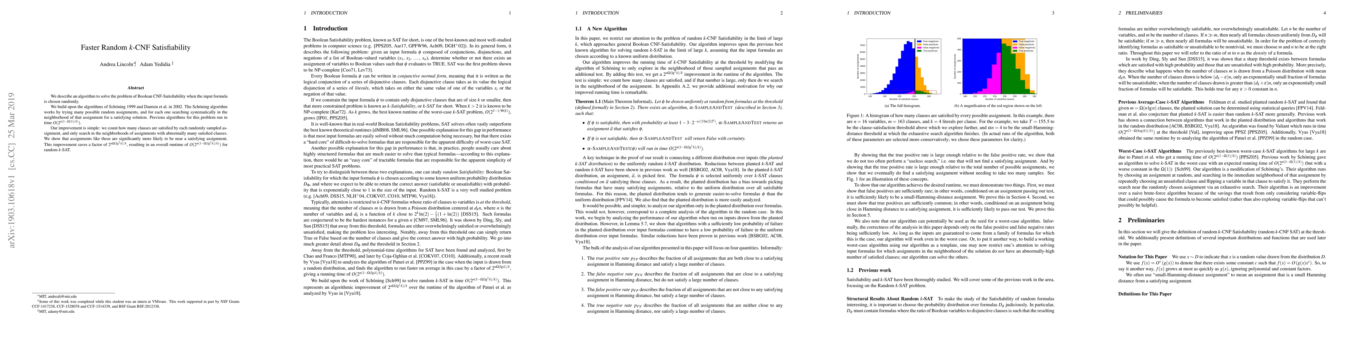 We describe an algorithm to solve the problem of Boolean CNF-Satisfiability when the input formula is chosen randomly. We build upon the algorithms of Sch{\"{o}}ning 1999 and Dantsin et al.~in 2002. The Sch{\"{o}}ning algorithm works by trying many possible random assignments, and for each one searching systematically in the neighborhood of that assignment for a satisfying solution. Previous algorithms for this problem run in time $O(2^{n (1- \Omega(1)/k)})$. Our improvement is simple: we count how many clauses are satisfied by each randomly sampled assignment, and only search in the neighborhoods of assignments with abnormally many satisfied clauses. We show that assignments like these are significantly more likely to be near a satisfying assignment. This improvement saves a factor of $2^{n \Omega(\lg^2 k)/k}$, resulting in an overall runtime of $O(2^{n (1- \Omega(\lg^2 k)/k)})$ for random $k$-SAT.