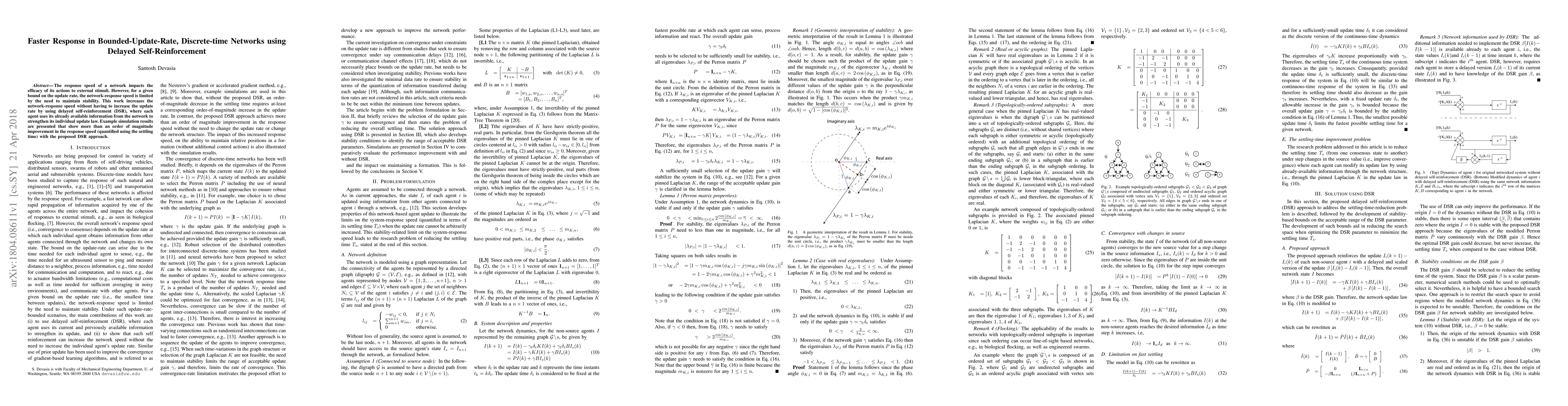 This paper proposes delayed self-reinforcement (DSR) to enhance response speed in bounded-update-rate networks without increasing update rates. Simulation results show over an order of magnitude improvement in response speed, quantified by settling time.
