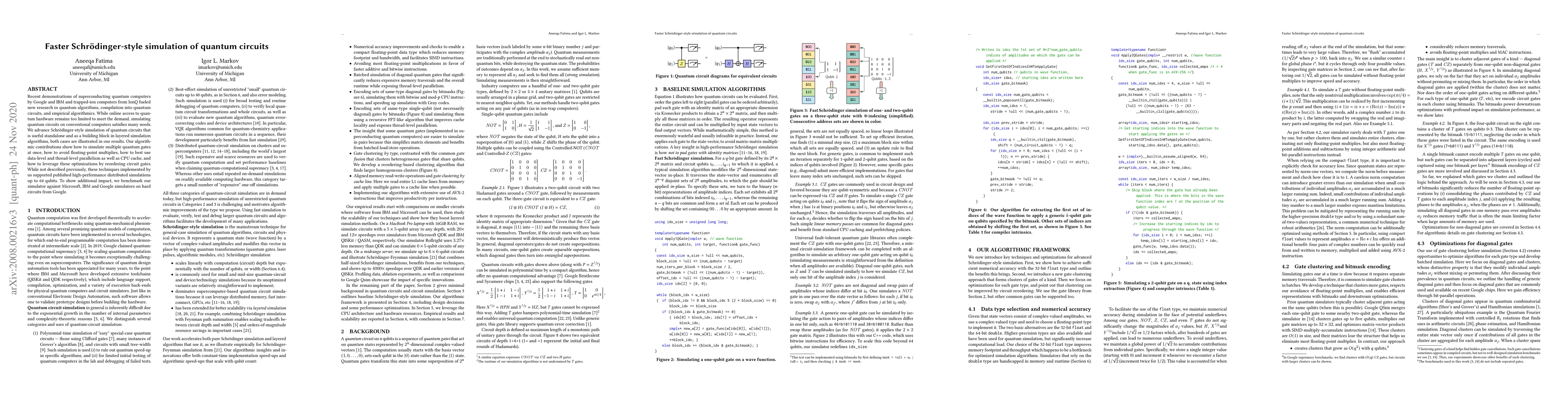 This paper presents advanced algorithms for faster Schr\"odinger-style simulation of quantum circuits, optimizing for parallelism and cache usage. The authors benchmark their optimized simulator against industry-standard tools, demonstrating significant performance improvements on complex quantum circuits.