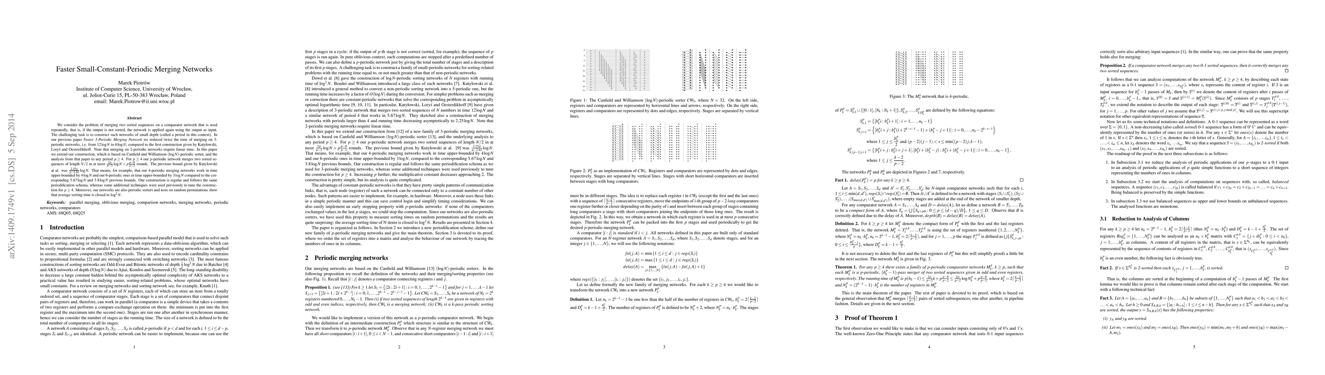We consider the problem of merging two sorted sequences on a comparator network that is used repeatedly, that is, if the output is not sorted, the network is applied again using the output as input. The challenging task is to construct such networks of small depth (called a period in this context). In our previous paper entitled Faster 3-Periodic Merging Network we reduced twice the time of merging on $3$-periodic networks, i.e. from $12\log N$ to $6\log N$, compared to the first construction given by Kuty{\l}owski, Lory\'s and Oesterdikhoff. Note that merging on $2$-periodic networks require linear time. In this paper we extend our construction, which is based on Canfield and Williamson $(\log N)$-periodic sorter, and the analysis from that paper to any period $p \ge 4$. For $p\ge 4$ our $p$-periodic network merges two sorted sequences of length $N/2$ in at most $\frac{2p}{p-2}\log N + p\frac{p-8}{p-2}$ rounds. The previous bound given by Kuty{\l}owski at al. was $\frac{2.25p}{p-2.42}\log N$. That means, for example, that our $4$-periodic merging networks work in time upper-bounded by $4\log N$ and our $6$-periodic ones in time upper-bounded by $3\log N$ compared to the corresponding $5.67\log N$ and $3.8\log N$ previous bounds. Our construction is regular and follows the same periodification schema, whereas some additional techniques were used previously to tune the construction for $p \ge 4$. Moreover, our networks are also periodic sorters and tests on random permutations show that average sorting time is closed to $\log^2 N$.