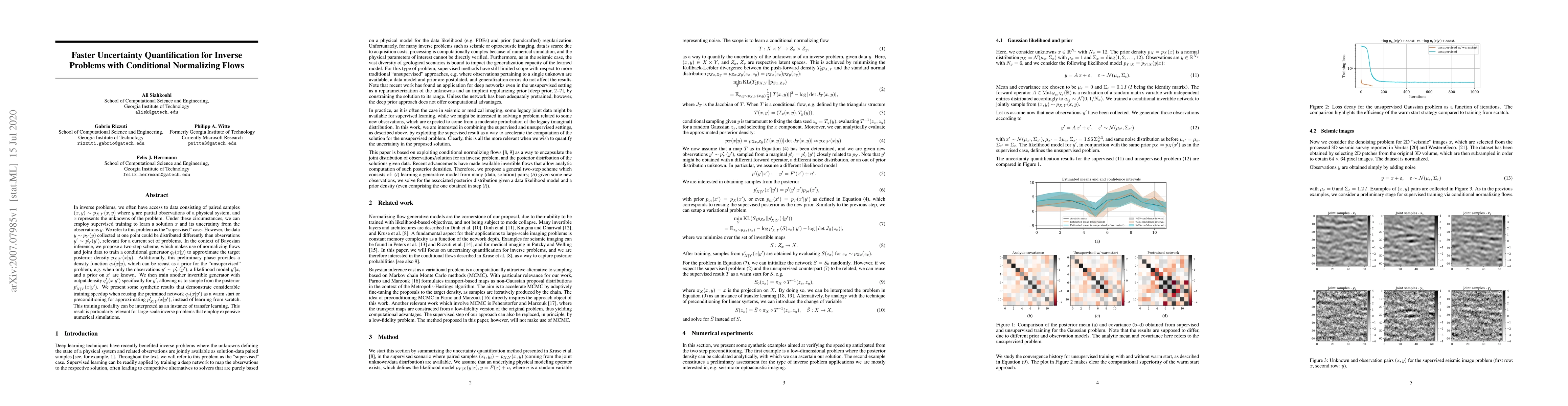 Researchers propose a two-step scheme using normalizing flows to train a conditional generator for inverse problems, achieving significant training speedup through transfer learning.