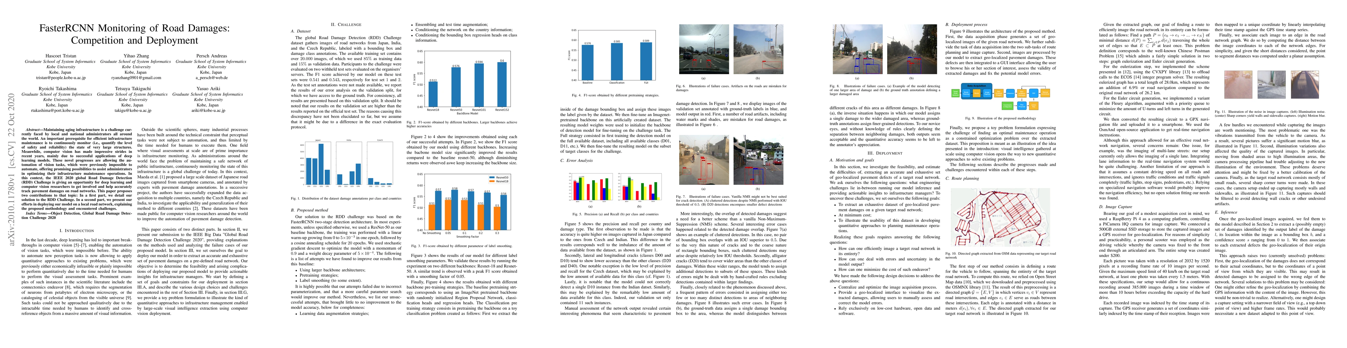 This paper proposes a FasterRCNN monitoring system for road damages, contributing to the IEEE 2020 global Road Damage Detection Challenge with accurate tracking of pavement damages on road networks.