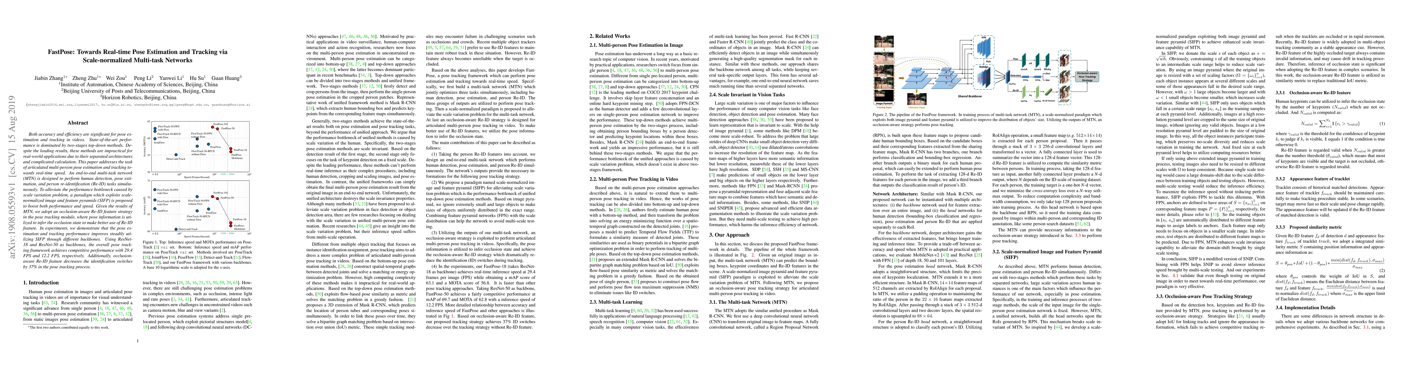 A new approach to real-time pose estimation and tracking in videos is proposed, using a scale-normalized multi-task network that improves efficiency while maintaining accuracy.