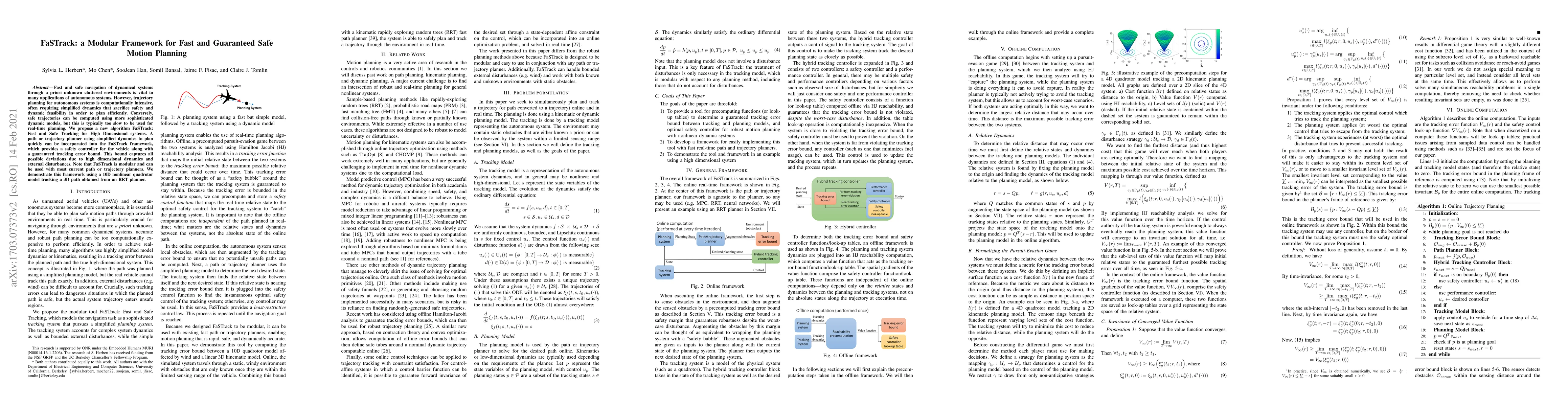 FaSTrack is a modular framework designed to enable fast and safe motion planning for autonomous systems navigating unknown, cluttered environments. It integrates existing fast planners with a safety controller, ensuring a guaranteed tracking error bound despite high-dimensional dynamics and external disturbances.