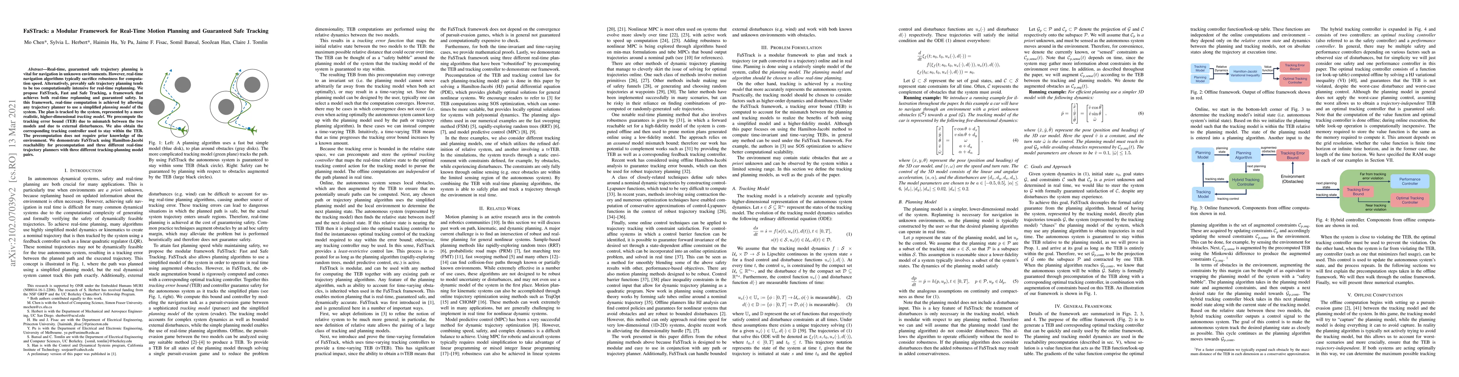FaSTrack is a modular framework for real-time motion planning that ensures safe navigation in unknown environments by balancing computation speed and robustness. It uses a simplified planning model and a more realistic tracking model, precomputing tracking error bounds and controllers to maintain safety without sacrificing real-time performance.