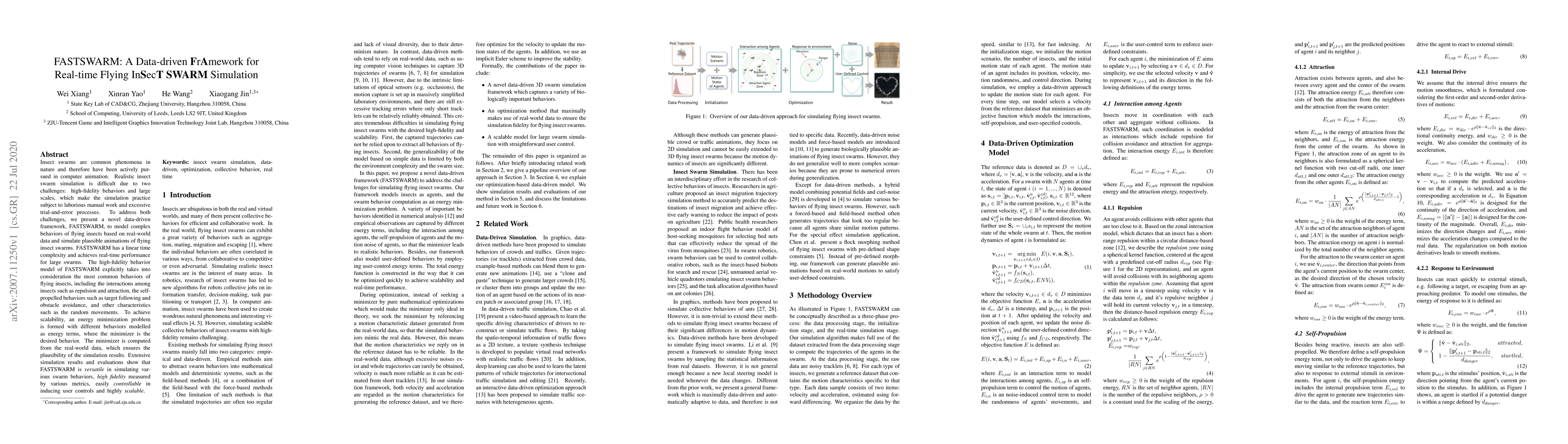 FASTSWARM is a novel data-driven framework for real-time simulation of flying insect swarms, addressing challenges of high-fidelity behaviors and large scales through a scalable energy minimization approach based on real-world data. It achieves real-time performance and high-fidelity simulations of swarm interactions and behaviors.