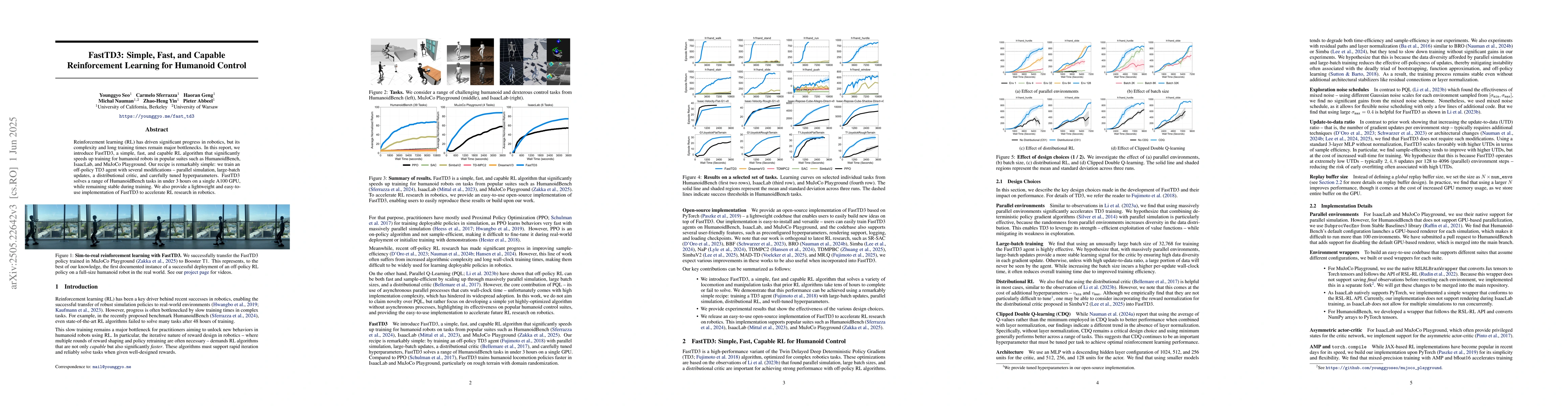 FastTD3 is a simple, fast, and capable reinforcement learning algorithm that speeds up training for humanoid robots by 3 hours on a single GPU, while remaining stable during training.