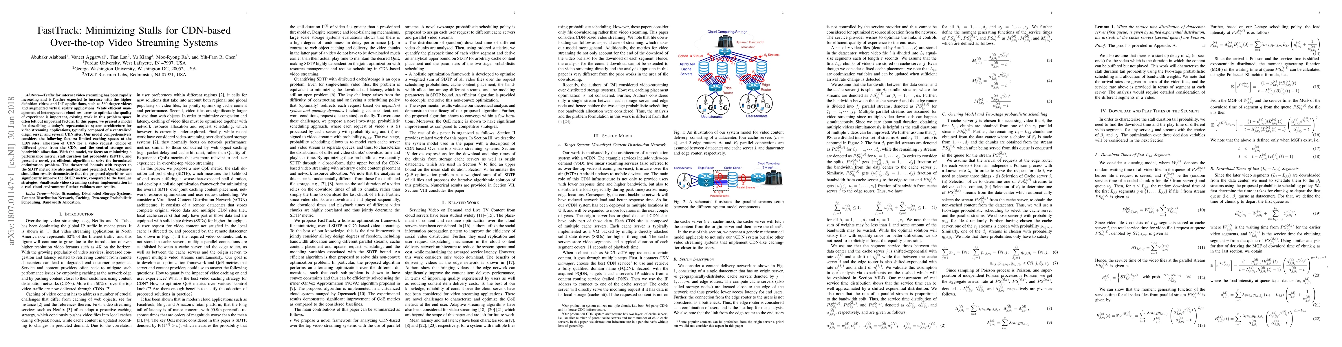 This paper proposes a model and algorithm to minimize stall duration tail probability (SDTP) in CDN-based video streaming systems, considering factors like limited caching, CDN allocation, and bandwidth. The approach significantly improves SDTP compared to baseline strategies, validated through simulations and a real-world implementation.