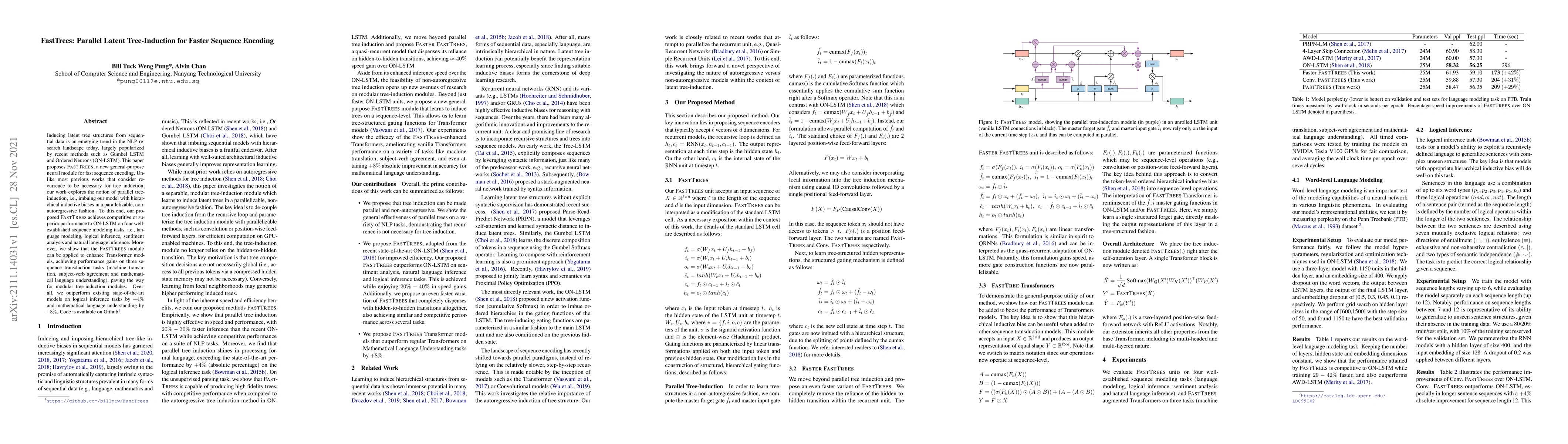 This paper introduces FASTTREES, a novel neural module for parallel latent tree-induction, achieving faster sequence encoding compared to autoregressive models. It outperforms existing state-of-the-art on various sequence modeling tasks and enhances Transformer models for sequence transduction.