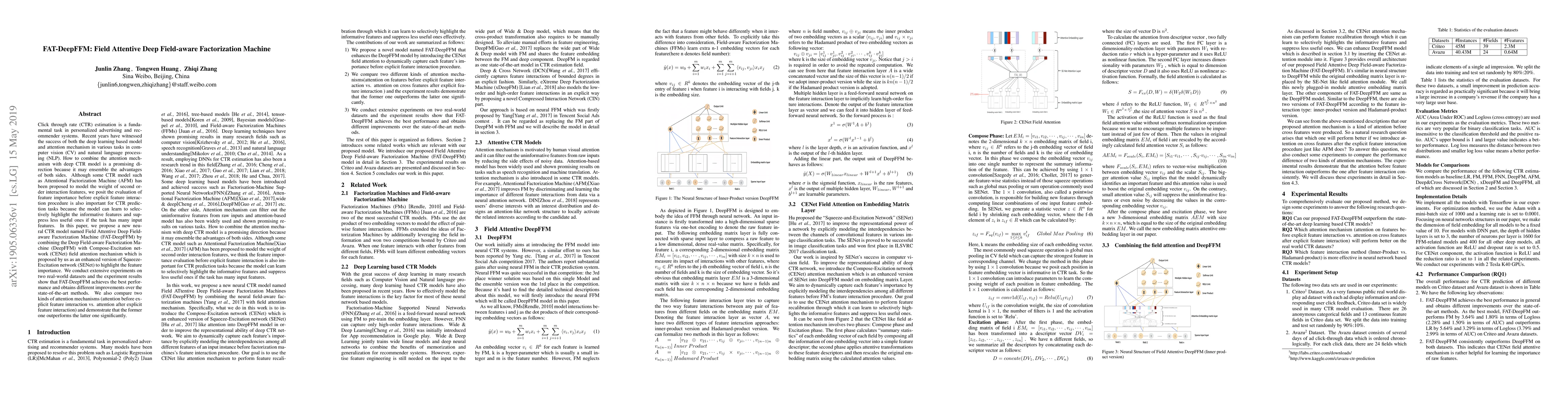 This paper proposes FAT-DeepFFM, a novel neural model for click-through rate estimation that combines DeepFFM with a Compose-Excitation network field attention mechanism to prioritize informative features. Experimental results show superior performance over state-of-the-art methods and indicate that attention before feature interaction is more effective.