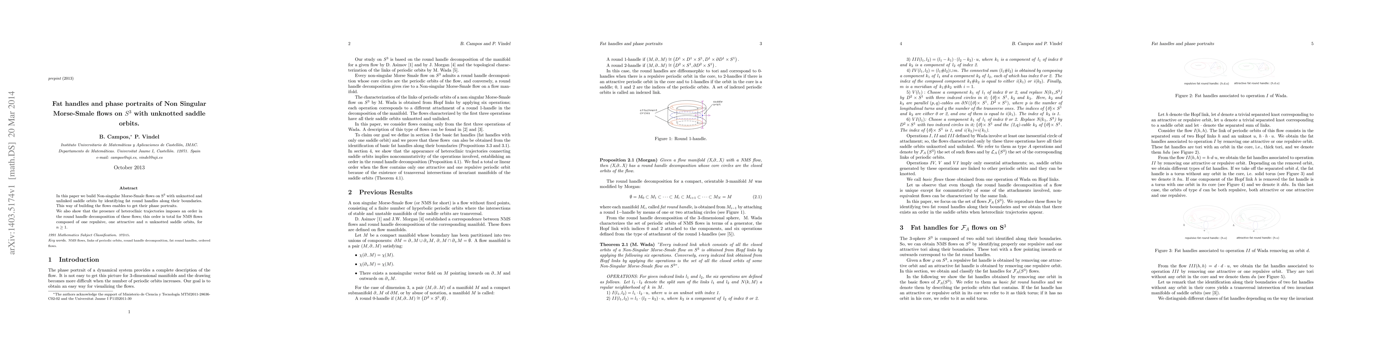 In this paper we build Non-singular Morse-Smale flows on S^3 with unknotted and unlinked saddle orbits by identifying fat round handles along their boundaries. This way of building the flows enables to get their phase portraits. We also show that the presence of heteroclinic trajectories imposes an order in the round handle decomposition of these flows; this order is total for NMS flows composed of one repulsive, one attractive and n unknotted saddle orbits, for n >1.