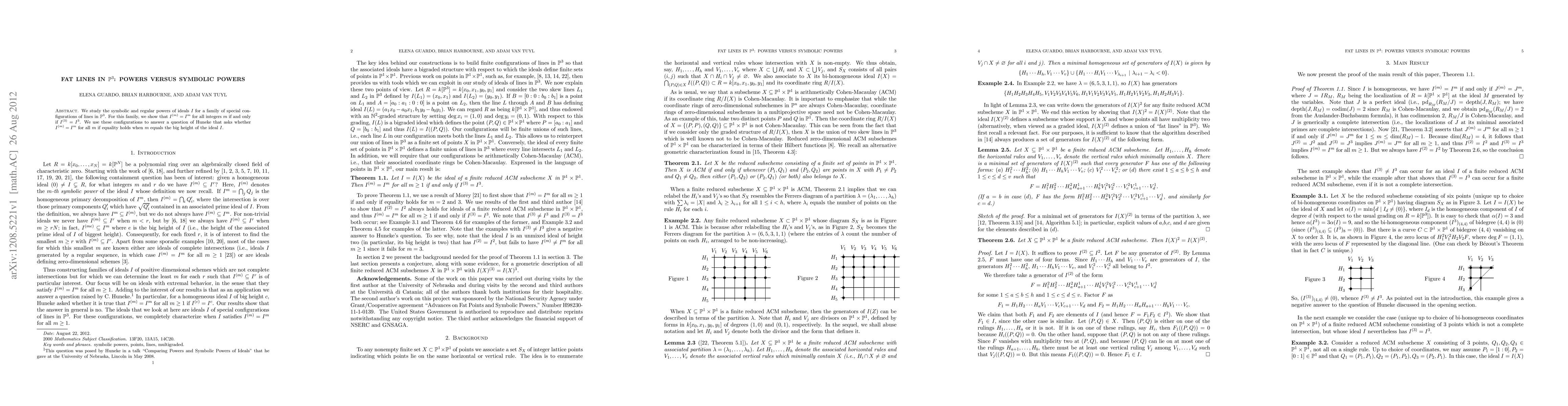 We study the symbolic and regular powers of ideals I for a family of special configurations of lines in P^3. For this family, we show that I^(m) = I^m for all integers m if and only if I^(3) = I^3. We use these configurations to answer a question of Huneke that asks whether I^(m) = I^m for all m if equality holds when m equals the big height of the ideal I.