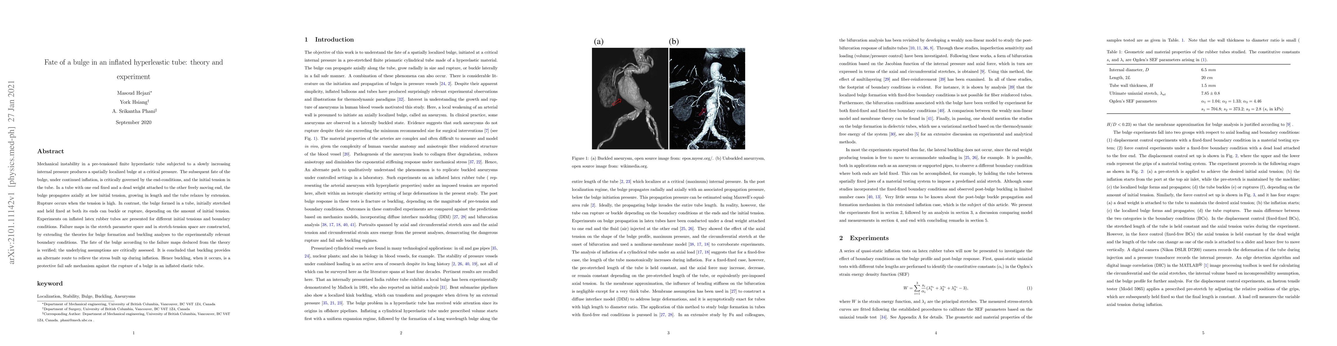 Researchers investigate how a bulge forms in an inflated tube and how it behaves under different conditions, concluding that buckling can relieve stress and prevent rupture.