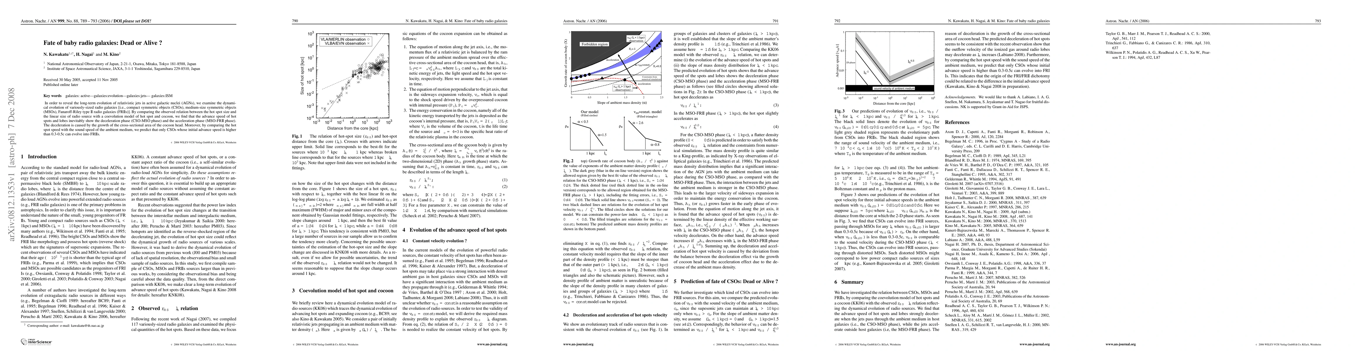 Baby radio galaxies exhibit deceleration and acceleration phases in their evolution, with only certain objects able to grow into FRIIs if they start fast enough. This suggests a complex interplay between jet speed, ambient medium, and galaxy growth.