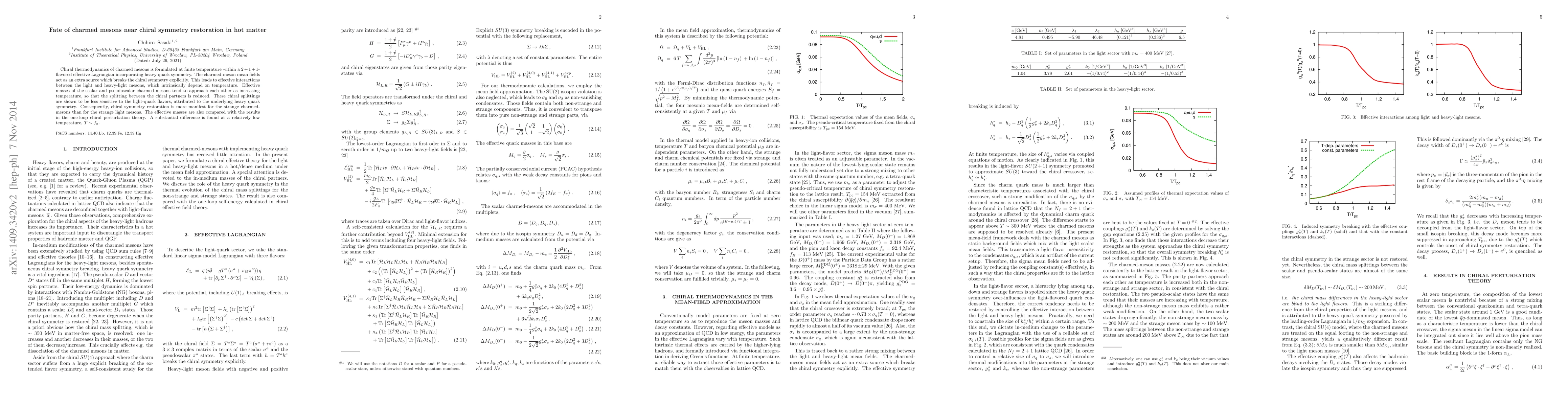 This paper explores the behavior of charmed mesons at finite temperature using a $2+1+1$-flavored effective Lagrangian, revealing that chiral symmetry restoration is more pronounced for strange charmed mesons due to heavy quark symmetry. Differences in effective masses compared to one-loop chiral perturbation theory are noted at a low temperature.