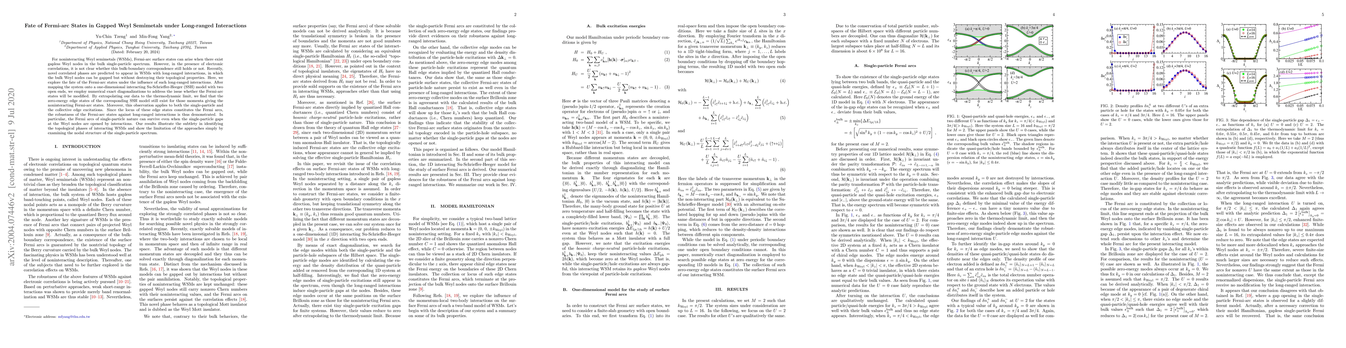 For noninteracting Weyl semimetals (WSMs), Fermi-arc surface states can arise when there exist gapless Weyl nodes in the bulk single-particle spectrum. However, in the presence of electronic correlations, it is not clear whether this bulk-boundary correspondence still holds or not. Recently, novel correlated phases are predicted to appear in WSMs with long-ranged interactions, in which the bulk Weyl nodes can be gapped but without destroying their topological properties. Here, we explore the fate of the Fermi-arc states under the influence of such long-ranged interactions. After mapping the system onto a one-dimensional interacting Su-Schrieffer-Heeger (SSH) model with two open ends, we employ numerical exact diagonalizations to address the issue whether the Fermi-arc states will be modified. By extrapolating our data to the thermodynamic limit, we find that the zero-energy edge states of the corresponding SSH model still exist for those momenta giving the noninteracting Fermi-arc states. Moreover, this observation applies to both the single-particle and the collective edge excitations. Since the locus of these edge states constitutes the Fermi arcs, the robustness of the Fermi-arc states against long-ranged interactions is thus demonstrated. In particular, the Fermi arcs of single-particle nature can survive even when the single-particle gaps at the Weyl nodes are opened by interactions. Our results illustrate the subtlety in identifying the topological phases of interacting WSMs and show the limitation of the approaches simply by examining the nodal structure of the single-particle spectrum.