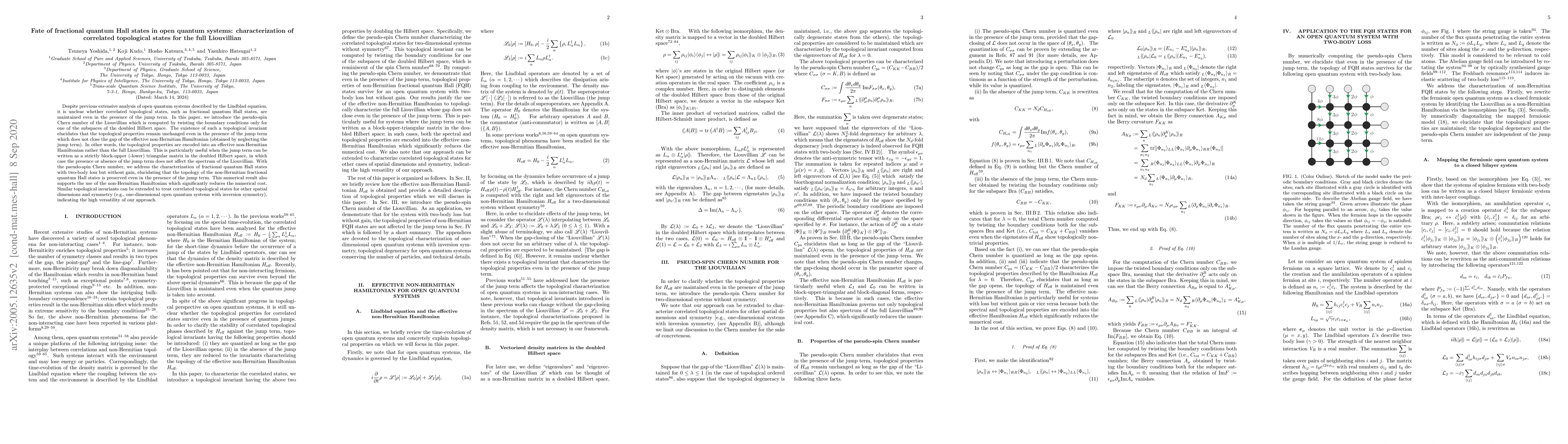 Despite previous extensive analysis of open quantum systems described by the Lindblad equation, it is unclear whether correlated topological states, such as fractional quantum Hall states, are maintained even in the presence of the jump term. In this paper, we introduce the pseudo-spin Chern number of the Liouvillian which is computed by twisting the boundary conditions only for one of the subspaces of the doubled Hilbert space. The existence of such a topological invariant elucidates that the topological properties remain unchanged even in the presence of the jump term which does not close the gap of the effective non-Hermitian Hamiltonian (obtained by neglecting the jump term). In other words, the topological properties are encoded into an effective non-Hermitian Hamiltonian rather than the full Liouvillian. This is particularly useful when the jump term can be written as a strictly block-upper (-lower) triangular matrix in the doubled Hilbert space, in which case the presence or absence of the jump term does not affect the spectrum of the Liouvillian. With the pseudo-spin Chern number, we address the characterization of fractional quantum Hall states with two-body loss but without gain, elucidating that the topology of the non-Hermitian fractional quantum Hall states is preserved even in the presence of the jump term. This numerical result also supports the use of the non-Hermitian Hamiltonian which significantly reduces the numerical cost. Similar topological invariants can be extended to treat correlated topological states for other spatial dimensions and symmetry (e.g., one-dimensional open quantum systems with inversion symmetry), indicating the high versatility of our approach.