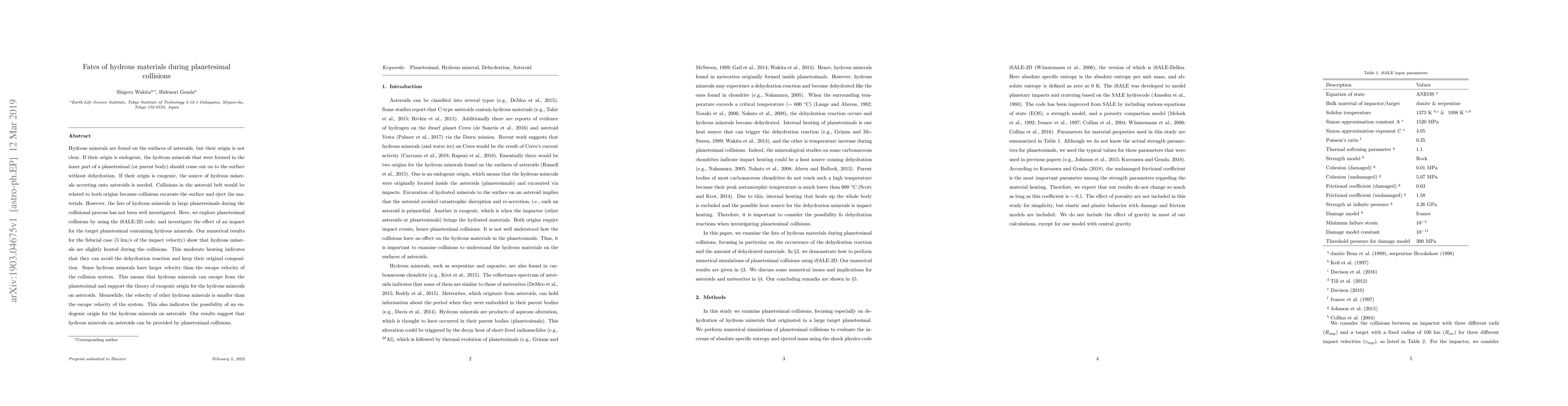 Hydrous minerals are found on the surfaces of asteroids, but their origin is not clear. If their origin is endogenic, the hydrous minerals that were formed in the inner part of a planetesimal (or parent body) should come out on to the surface without dehydration. If their origin is exogenic, the source of hydrous minerals accreting onto asteroids is needed. Collisions in the asteroid belt would be related to both origins because collisions excavate the surface and eject the materials. However, the fate of hydrous minerals in large planetesimals during the collisional process has not been well investigated. Here, we explore planetesimal collisions by using the iSALE-2D code, and investigate the effect of an impact for the target planetesimal containing hydrous minerals. Our numerical results for the fiducial case (5 km/s of the impact velocity) show that hydrous minerals are slightly heated during the collisions. This moderate heating indicates that they can avoid the dehydration reaction and keep their original composition. Some hydrous minerals have larger velocity than the escape velocity of the collision system. This means that hydrous minerals can escape from the planetesimal and support the theory of exogenic origin for the hydrous minerals on asteroids. Meanwhile, the velocity of other hydrous minerals is smaller than the escape velocity of the system. This also indicates the possibility of an endogenic origin for the hydrous minerals on asteroids. Our results suggest that hydrous minerals on asteroids can be provided by planetesimal collisions.