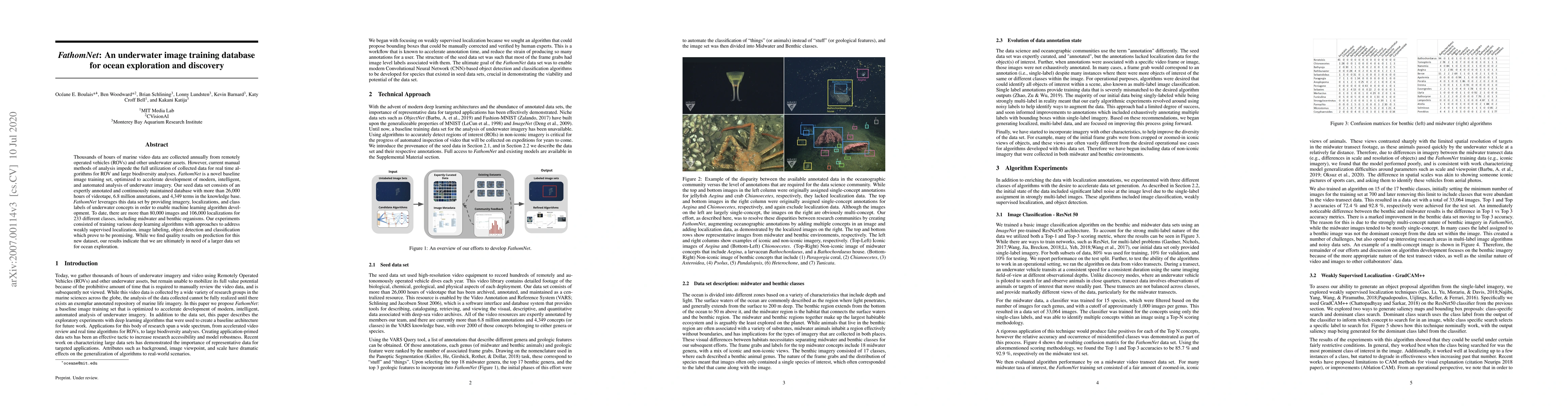 Researchers developed FathomNet, a large underwater image training database to accelerate analysis of ocean exploration data, achieving promising results in machine learning algorithms for object detection and classification.