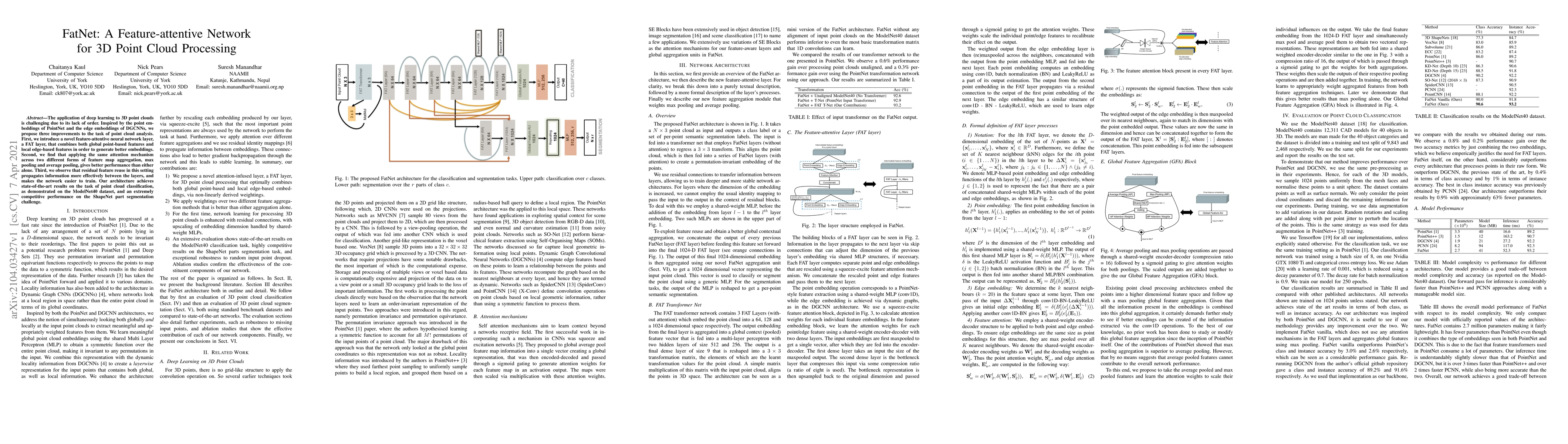 The application of deep learning to 3D point clouds is challenging due to its lack of order. Inspired by the point embeddings of PointNet and the edge embeddings of DGCNNs, we propose three improvements to the task of point cloud analysis. First, we introduce a novel feature-attentive neural network layer, a FAT layer, that combines both global point-based features and local edge-based features in order to generate better embeddings. Second, we find that applying the same attention mechanism across two different forms of feature map aggregation, max pooling and average pooling, gives better performance than either alone. Third, we observe that residual feature reuse in this setting propagates information more effectively between the layers, and makes the network easier to train. Our architecture achieves state-of-the-art results on the task of point cloud classification, as demonstrated on the ModelNet40 dataset, and an extremely competitive performance on the ShapeNet part segmentation challenge.