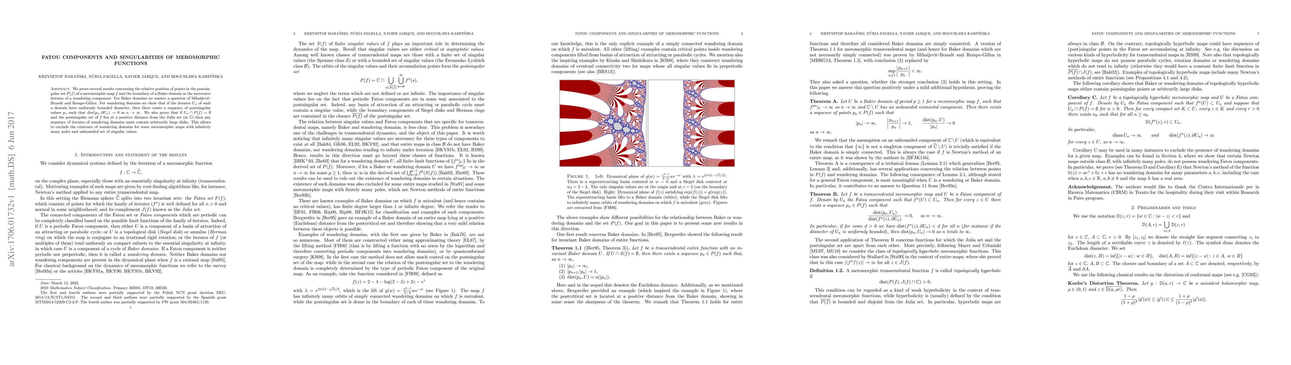 This paper proves several results about meromorphic functions, including the relative position of points in postsingular sets and boundaries of Baker domains or wandering components, with implications for the existence of certain types of meromorphic maps.