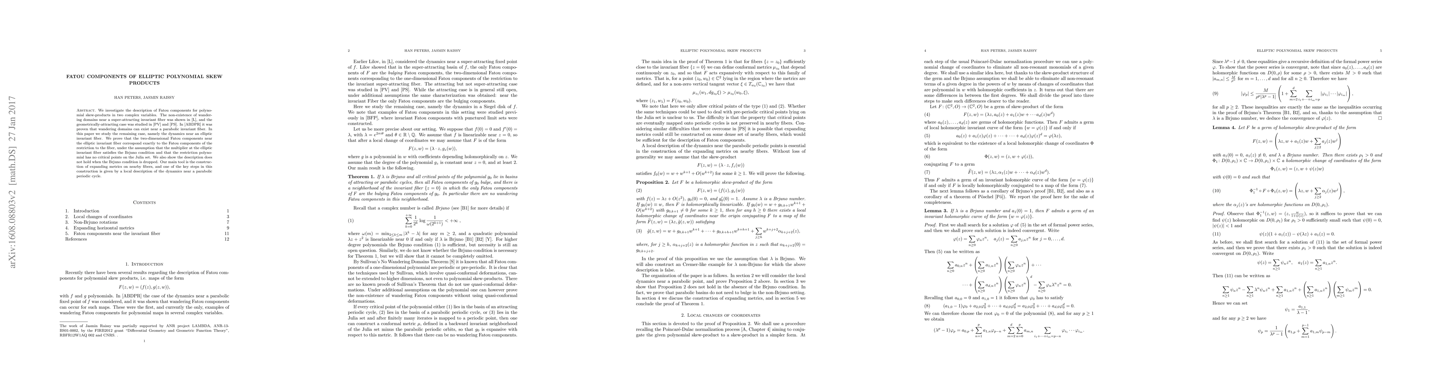 We investigate the description of Fatou components for polynomial skew-products in two complex variables. The non-existence of wandering domains near a super-attracting invariant fiber was shown in [L], and the geometrically-attracting case was studied in [PV] and [PS]. In [ABDPR] it was proven that wandering domains can exist near a parabolic invariant fiber. In this paper we study the remaining case, namely the dynamics near an elliptic invariant fiber. We prove that the two-dimensional Fatou components near the elliptic invariant fiber correspond exactly to the Fatou components of the restriction to the fiber, under the assumption that the multiplier at the elliptic invariant fiber satisfies the Brjuno condition and that the restriction polynomial has no critical points on the Julia set. We also show the description does not hold when the Brjuno condition is dropped. Our main tool is the construction of expanding metrics on nearby fibers, and one of the key steps in this construction is given by a local description of the dynamics near a parabolic periodic cycle.