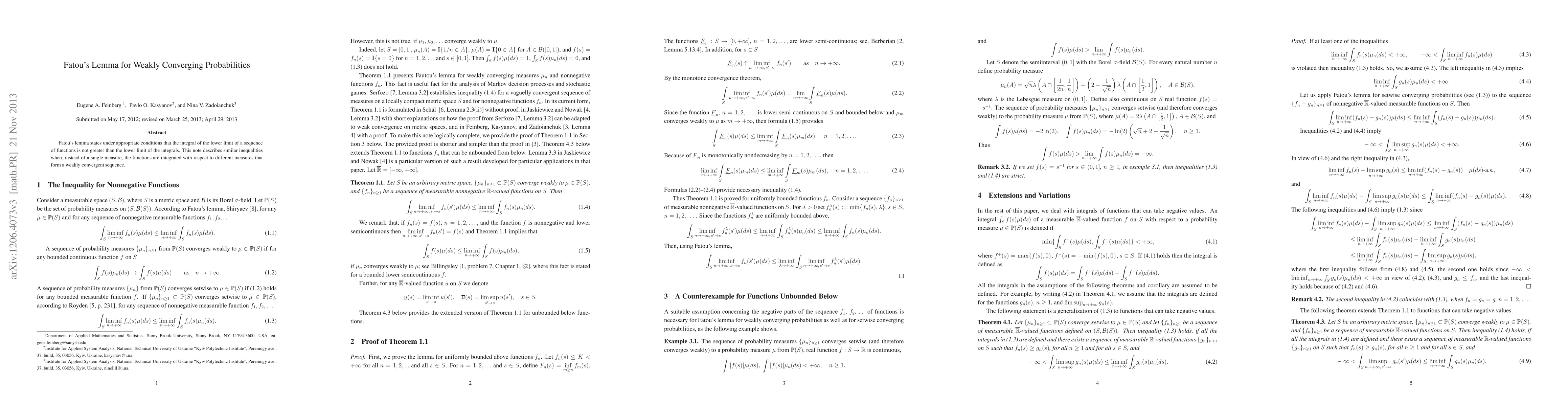 Summary: This paper extends Fatou's lemma to sequences of measures that converge weakly, showing that the integral of the lower limit of a sequence of functions remains bounded by the lower limit of the integrals, even when integrated with respect to weakly converging measures.