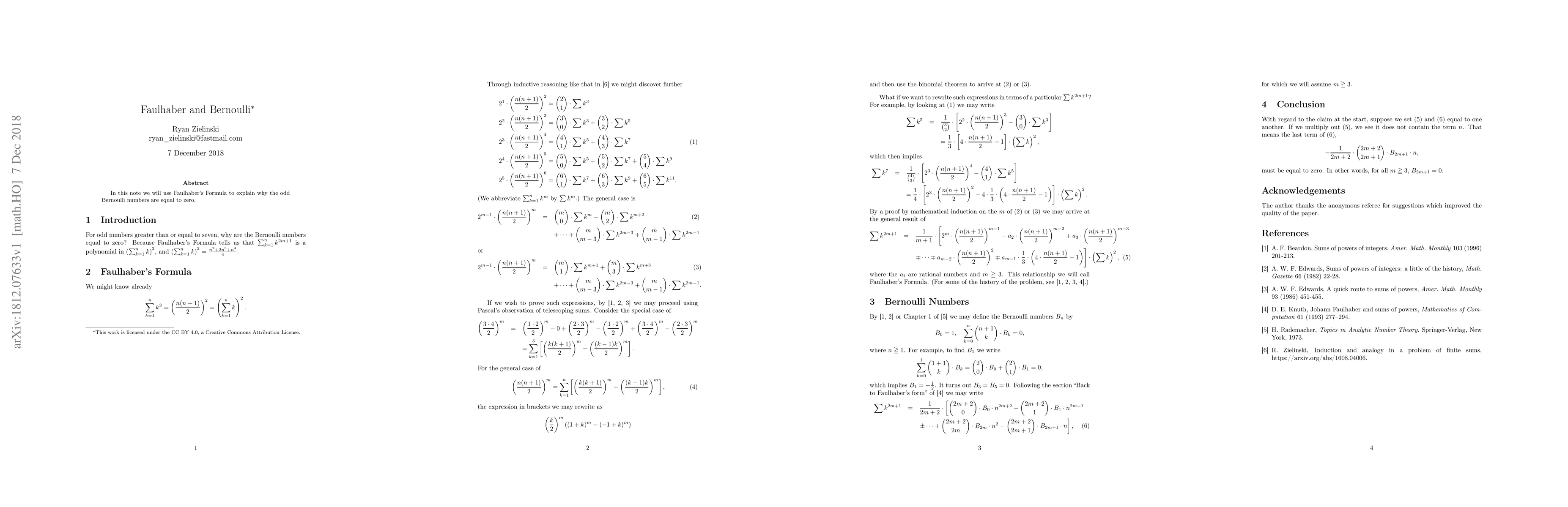 In this note we will use Faulhaber's Formula to explain why the odd Bernoulli numbers are equal to zero.