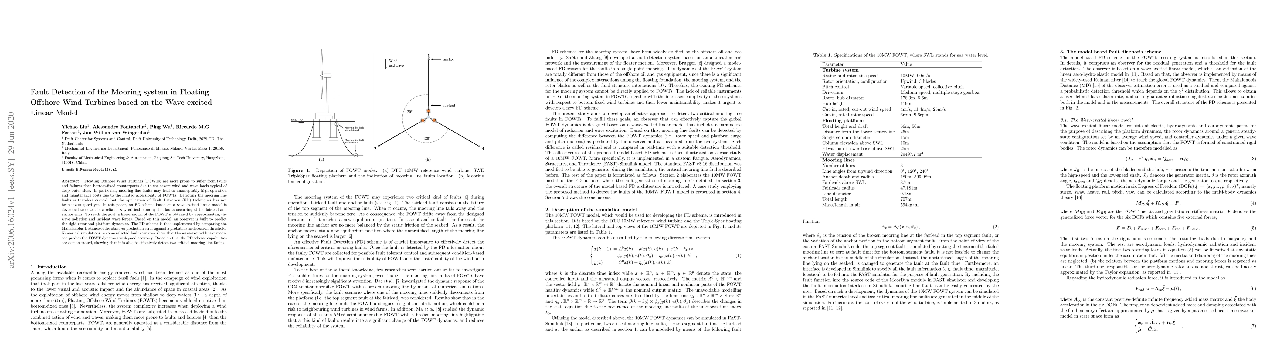 A new Fault Detection method for Floating Offshore Wind Turbines uses a wave-excited linear model to predict mooring line faults with high accuracy.
