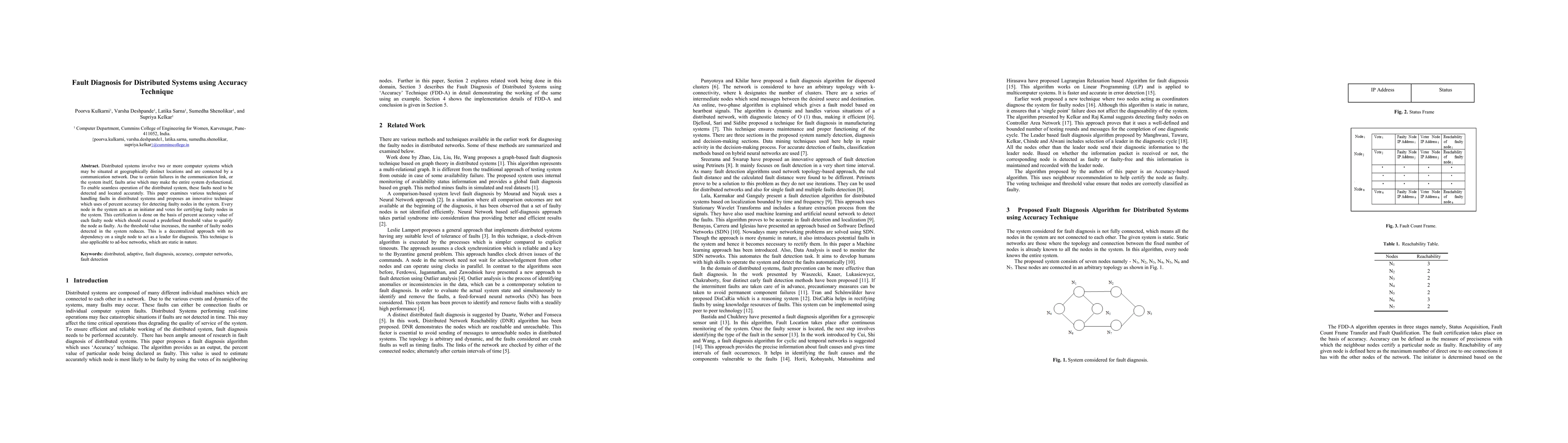 Distributed Systems involve two or more computer systems which may be situated at geographically distinct locations and are connected by a communication network. Due to failures in the communication link, faults arise which may make the entire system dysfunctional. To enable seamless operation of the distributed system, these faults need to be detected and located accurately. This paper examines various techniques of handling faults in distributed systems and proposes and innovative technique which uses percent accuracy for detecting faulty nodes in the system. Every node in the system acts as an initiator and votes for certifying faulty nodes in the system. This certification is done on the basis of percent accuracy value of each faulty node which should exceed a predefined threshold value to qualify node as faulty. As the threshold increases, the number of faulty nodes detected in the system reduces. This is a decentralized approach with no dependency on a single node to act as a leader for diagnosis. This technique is also applicable to ad-hoc networks, which are static in nature.