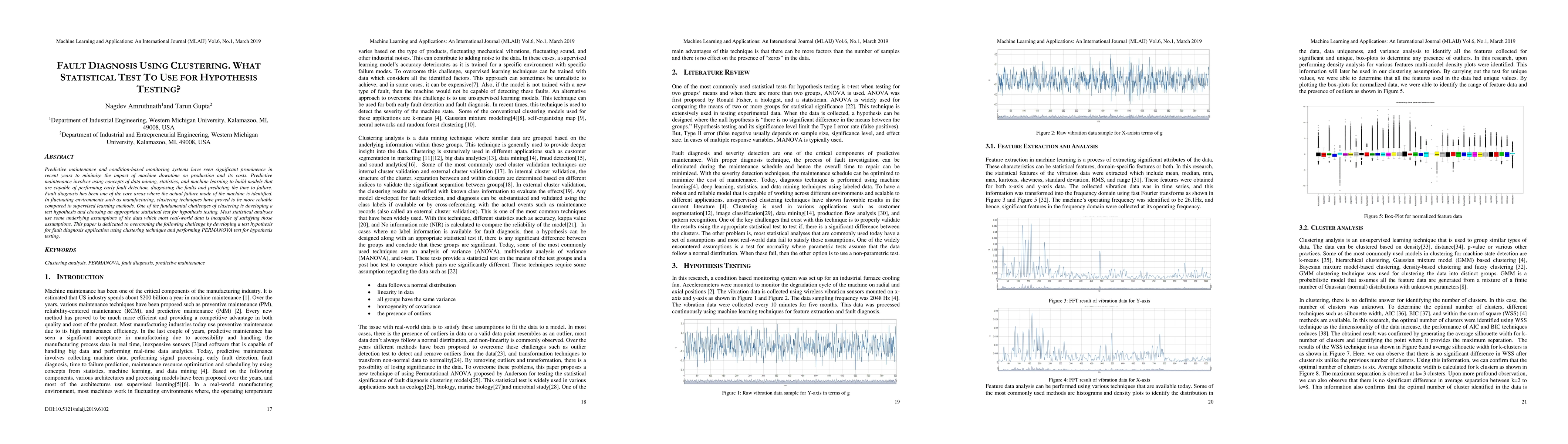 This paper explores fault diagnosis in predictive maintenance using clustering techniques, focusing on developing a test hypothesis and employing the PERMANOVA statistical test for hypothesis testing to overcome challenges posed by real-world data.