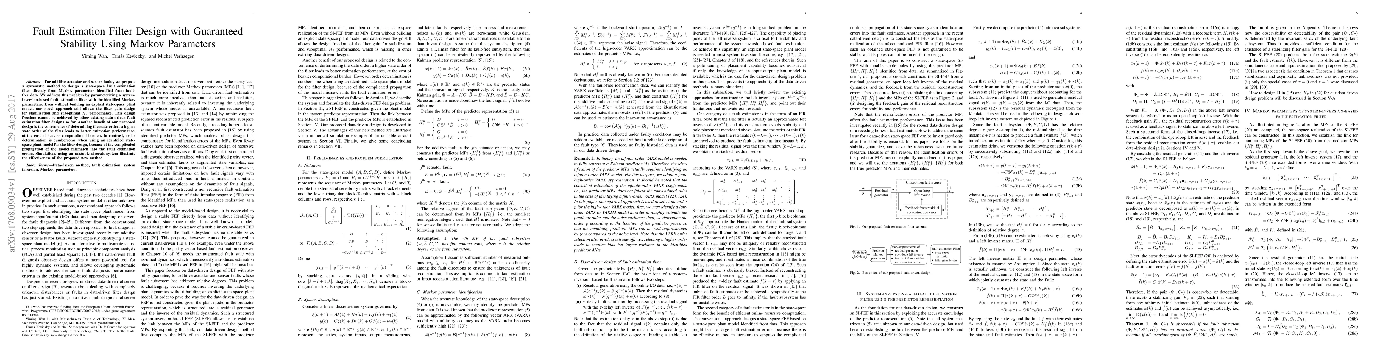 For additive actuator and sensor faults, we propose a systematic method to design a state-space fault estimation filter directly from Markov parameters identified from fault-free data. We address this problem by parameterizing a system-inversion-based fault estimation filter with the identified Markov parameters. Even without building an explicit state-space plant model, our novel approach still allows the filter gain design for stabilization and suboptimal $\mathcal{H}_2$ performance. This design freedom cannot be achieved by other existing data-driven fault estimation filter designs so far. Another benefit of our proposed design is the convenience of determining the state order: a higher state order of the filter leads to better estimation performance, at the cost of heavier computational burden. In contrast, order determination is cumbersome when using an identified state-space plant model for the filter design, because of the complicated propagation of the model mismatch into the fault estimation errors. Simulations using an unstable aircraft system illustrate the effectiveness of the proposed new method.