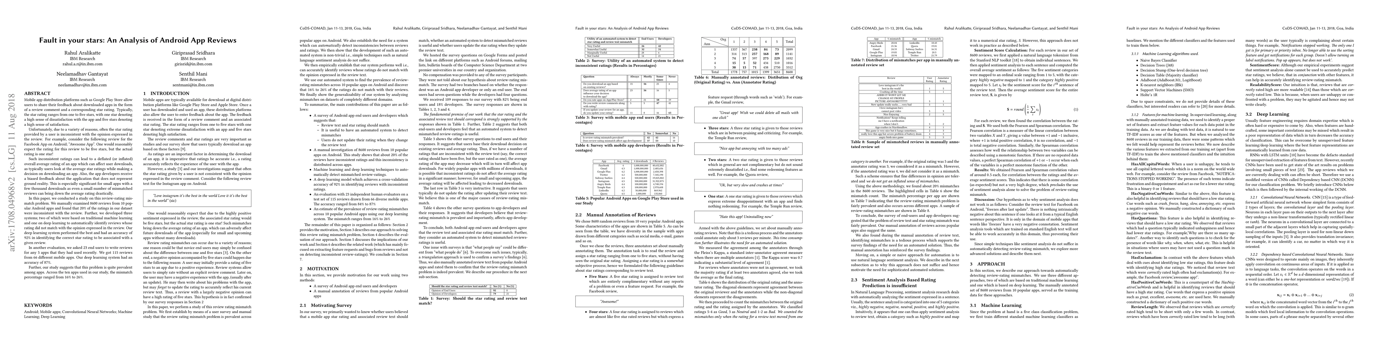 This paper investigates the issue of inconsistent star ratings in Android app reviews, finding that 20% of ratings do not match the expressed opinion in reviews. The authors developed three systems to automatically detect such mismatches, with the deep learning model achieving 92% accuracy, highlighting the importance of accurate feedback for app developers and user decision-making.