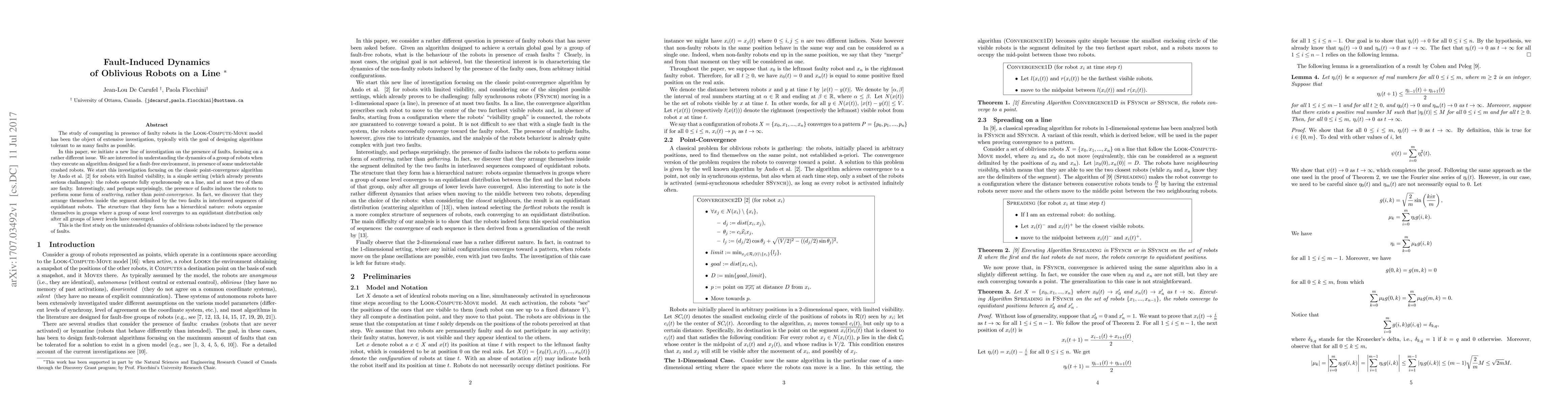 The study of computing in presence of faulty robots in the Look-Compute-Move model has been the object of extensive investigation, typically with the goal of designing algorithms tolerant to as many faults as possible. In this paper, we initiate a new line of investigation on the presence of faults, focusing on a rather different issue. We are interested in understanding the dynamics of a group of robots when they execute an algorithm designed for a fault-free environment, in presence of some undetectable crashed robots. We start this investigation focusing on the classic point-convergence algorithm by Ando et al. for robots with limited visibility, in a simple setting (which already presents serious challenges): the robots operate fully synchronously on a line, and at most two of them are faulty. Interestingly, and perhaps surprisingly, the presence of faults induces the robots to perform some form of scattering, rather than point-convergence. In fact, we discover that they arrange themselves inside the segment delimited by the two faults in interleaved sequences of equidistant robots. The structure that they form has a hierarchical nature: robots organize themselves in groups where a group of some level converges to an equidistant distribution only after all groups of lower levels have converged. This is the first study on the unintended dynamics of oblivious robots induced by the presence of faults.
