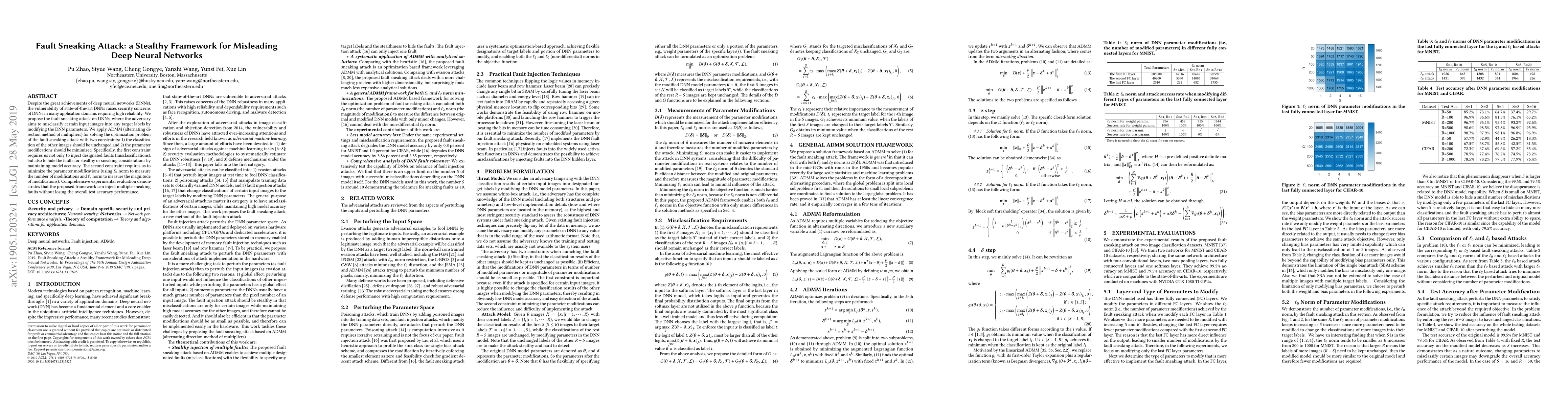 Researchers propose a new attack method called Fault Sneaking Attack to mislead deep neural networks, enabling malicious input images to be classified as any other label without affecting overall performance. The proposed framework uses an optimization algorithm to minimize parameter modifications while maintaining model accuracy.