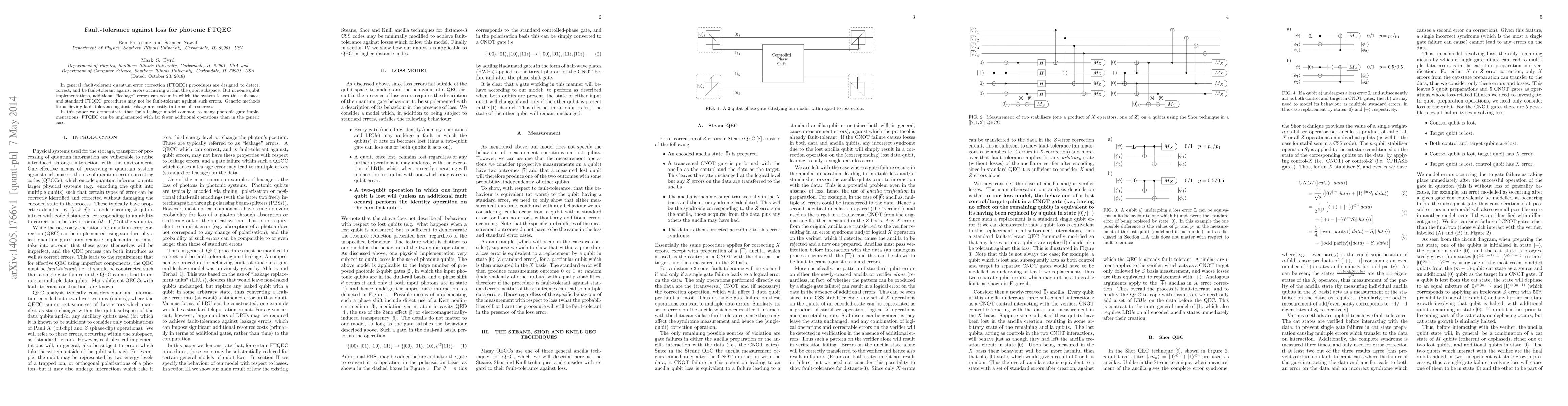 In general, fault-tolerant quantum error correction (FTQEC) procedures are designed to detect, correct, and be fault-tolerant against errors occurring within the qubit subspace. But in some qubit implementations, additional "leakage" errors can occur in which the system leaves this subspace, and standard FTQEC procedures may not be fault-tolerant against such errors. Generic methods for achieving fault-tolerance against leakage are costly in terms of resources. In this paper we demonstrate that for a leakage model common to many photonic gate implementations, FTQEC can be implemented with far fewer additional operations than in the generic case.