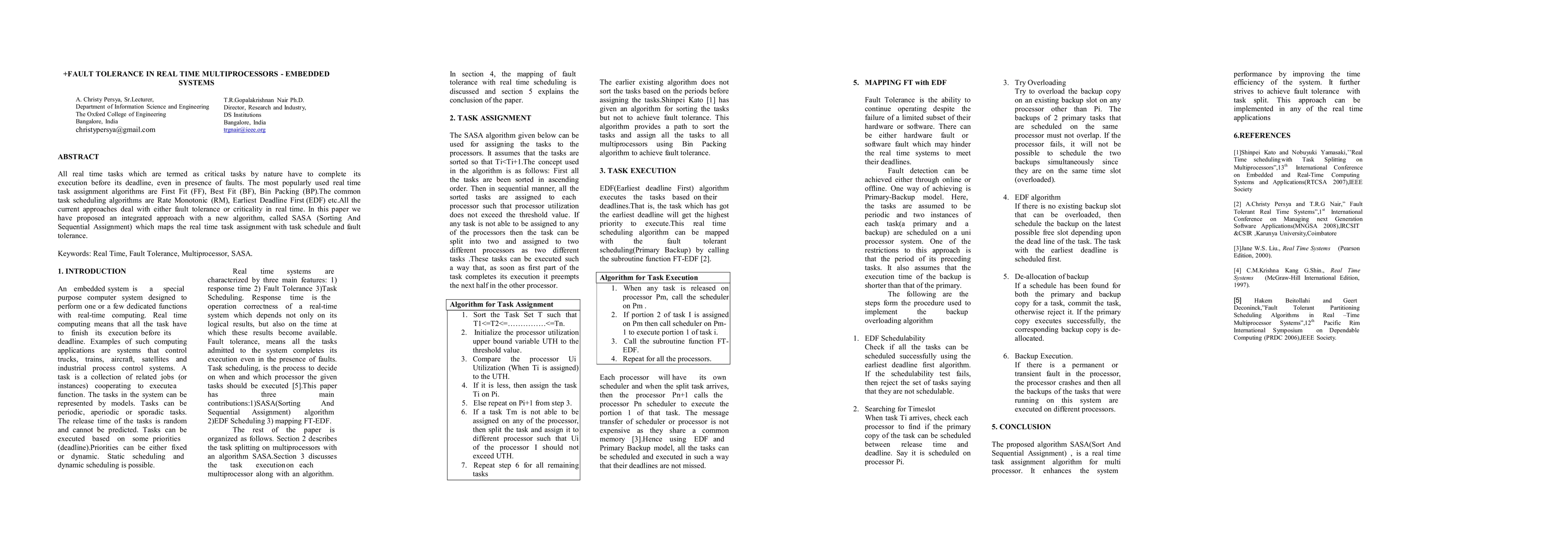 A new algorithm called SASA is proposed to integrate real-time task assignment with fault tolerance in embedded systems, improving the reliability of critical tasks.