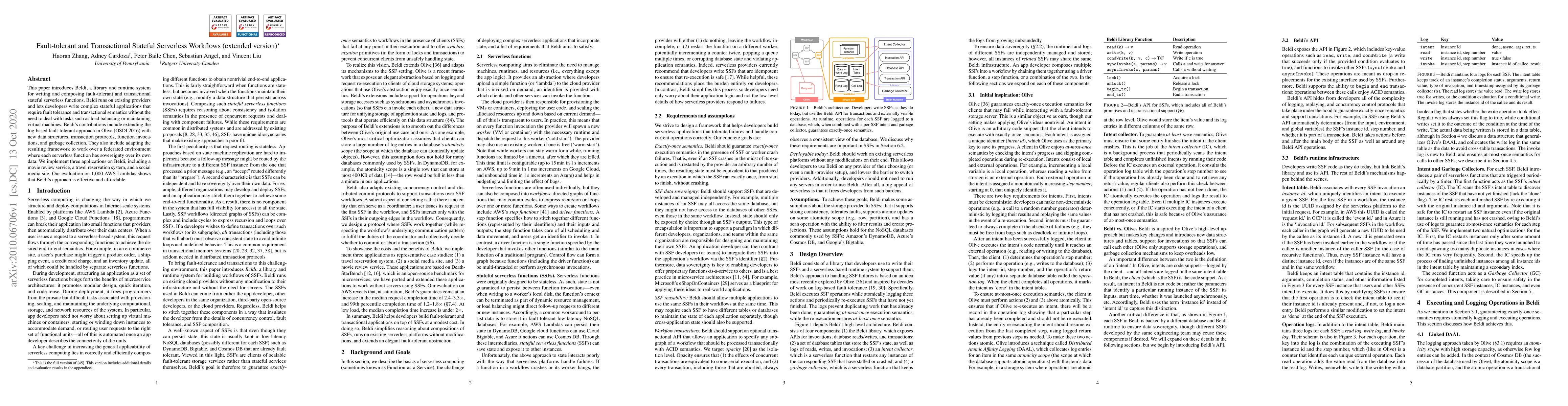 This paper presents Beldi, a library and runtime system enabling developers to write fault-tolerant and transactional stateful serverless functions. Beldi extends Olive's log-based fault tolerance and introduces new data structures and transaction protocols, all within a federated environment. Evaluation on AWS Lambdas demonstrates Beldi's effectiveness and cost-efficiency.