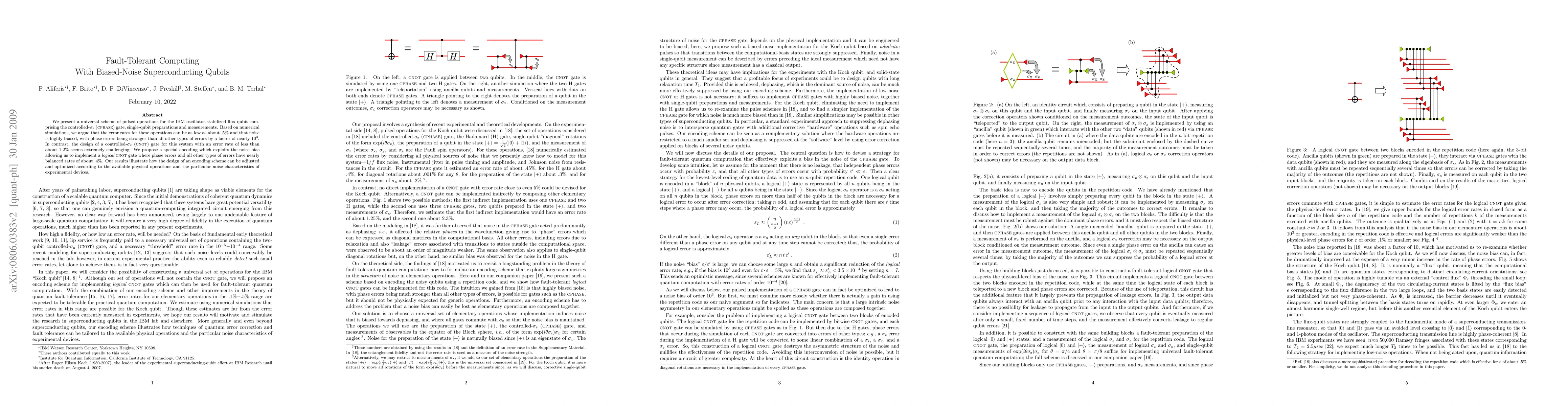 We present a universal scheme of pulsed operations for the IBM oscillator-stabilized flux qubit comprising the CPHASE gate, single-qubit preparations and measurements. Based on numerical simulations, we argue that the error rates for these operations can be as low as about .5% and that noise is highly biased, with phase errors being stronger than all other types of errors by a factor of nearly 10^3. In contrast, the design of a CNOT gate for this system with an error rate of less than about 1.2% seems extremely challenging. We propose a special encoding which exploits the noise bias allowing us to implement a logical CNOT gate where phase errors and all other types of errors have nearly balanced rates of about .4%. Our results illustrate how the design of an encoding scheme can be adjusted and optimized according to the available physical operations and the particular noise characteristics of experimental devices.