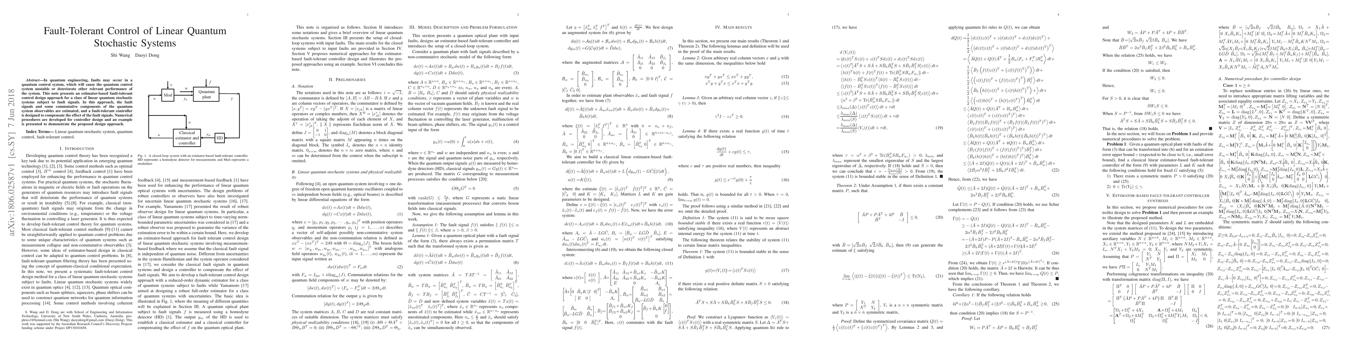 This paper proposes an estimator-based fault-tolerant control design for linear quantum stochastic systems affected by faults, estimating fault signals and commutative components to develop a compensating controller. Numerical procedures are provided, and an example illustrates the effectiveness of the approach.