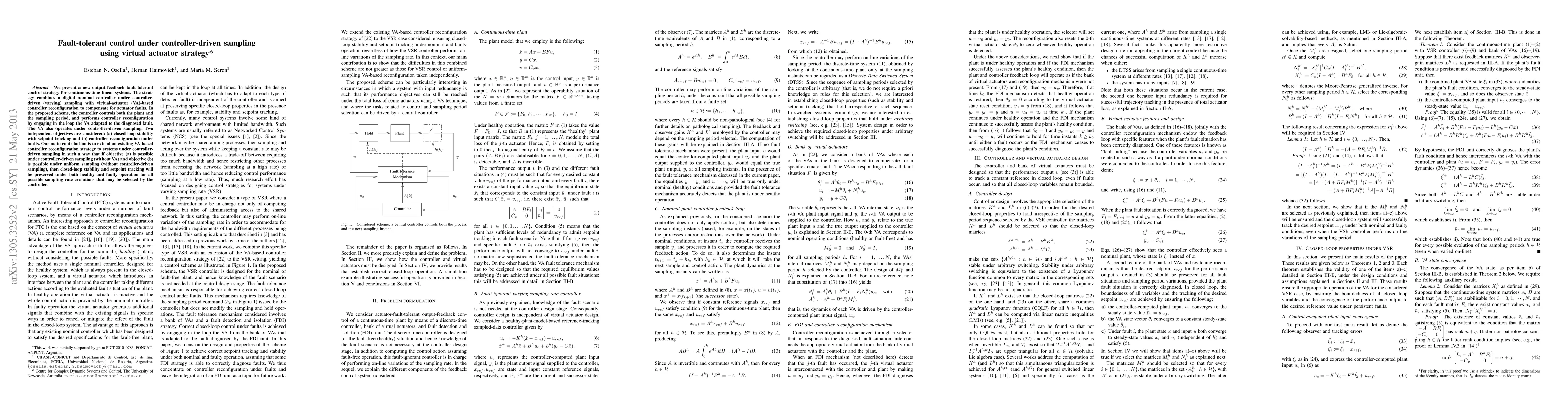 This paper proposes a fault-tolerant control strategy for linear systems using virtual actuators and controller-driven sampling. It ensures closed-loop stability and setpoint tracking under both normal and faulty conditions, adapting to varying sampling rates.