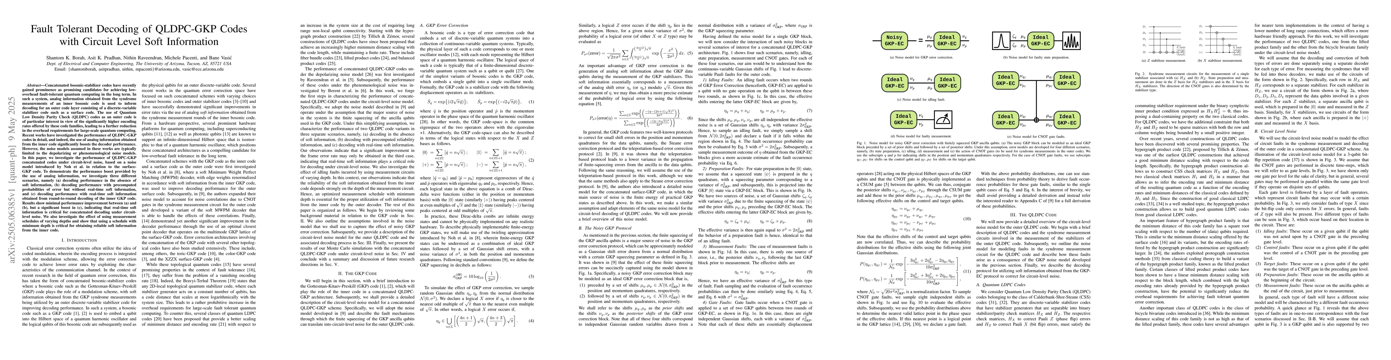 This work distinguishes itself by focusing on circuit-level noise and emphasizing the critical role of real-time soft information, which has not been extensively explored in prior research on QLDPC-GKP codes.