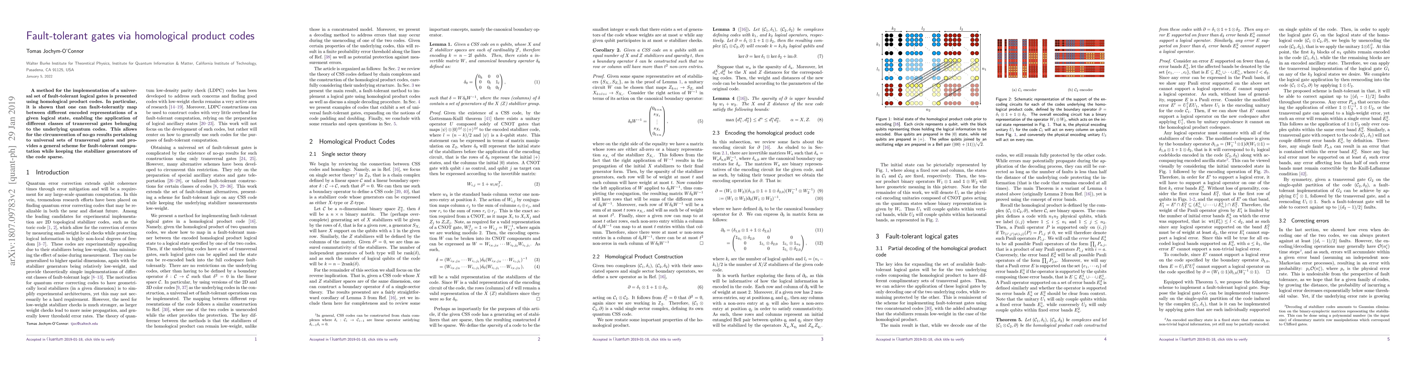 A method for the implementation of a universal set of fault-tolerant logical gates is presented using homological product codes. In particular, it is shown that one can fault-tolerantly map between different encoded representations of a given logical state, enabling the application of different classes of transversal gates belonging to the underlying quantum codes. This allows for the circumvention of no-go results pertaining to universal sets of transversal gates and provides a general scheme for fault-tolerant computation while keeping the stabilizer generators of the code sparse.