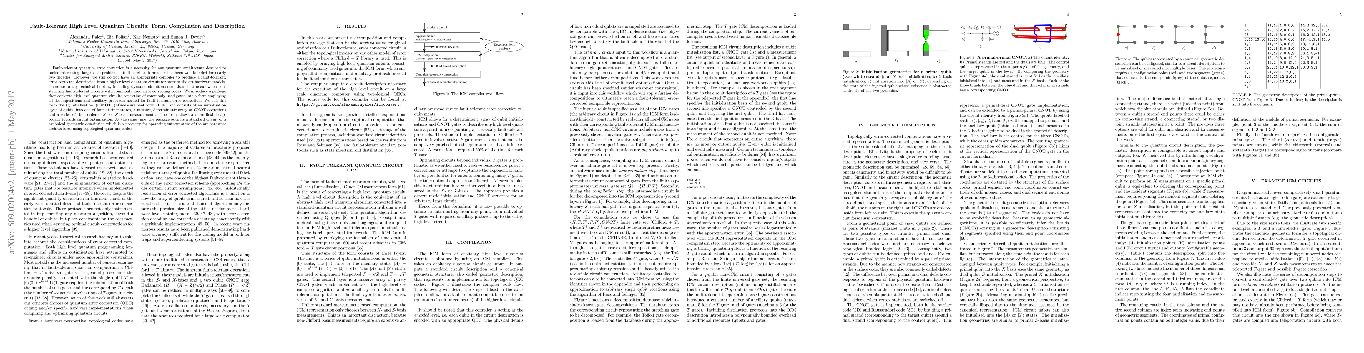 Fault-tolerant quantum error correction is a necessity for any quantum architecture destined to tackle interesting, large-scale problems. Its theoretical formalism has been well founded for nearly two decades. However, we still do not have an appropriate compiler to produce a fault-tolerant, error corrected description from a higher level quantum circuit for state of the art hardware models. There are many technical hurdles, including dynamic circuit constructions that occur when constructing fault-tolerant circuits with commonly used error correcting codes. We introduce a package that converts high level quantum circuits consisting of commonly used gates into a form employing all decompositions and ancillary protocols needed for fault-tolerant error correction. We call this form the (I)initialisation, (C)NOT, (M)measurement form (ICM) and consists of an initialisation layer of qubits into one of four distinct states, a massive, deterministic array of CNOT operations and a series of time ordered $X$- or $Z$-basis measurements. The form allows a more flexbile approach towards circuit optimisation. At the same time, the package outputs a standard circuit or a canonical geometric description which is a necessity for operating current state-of-the-art hardware architectures using topological quantum codes.