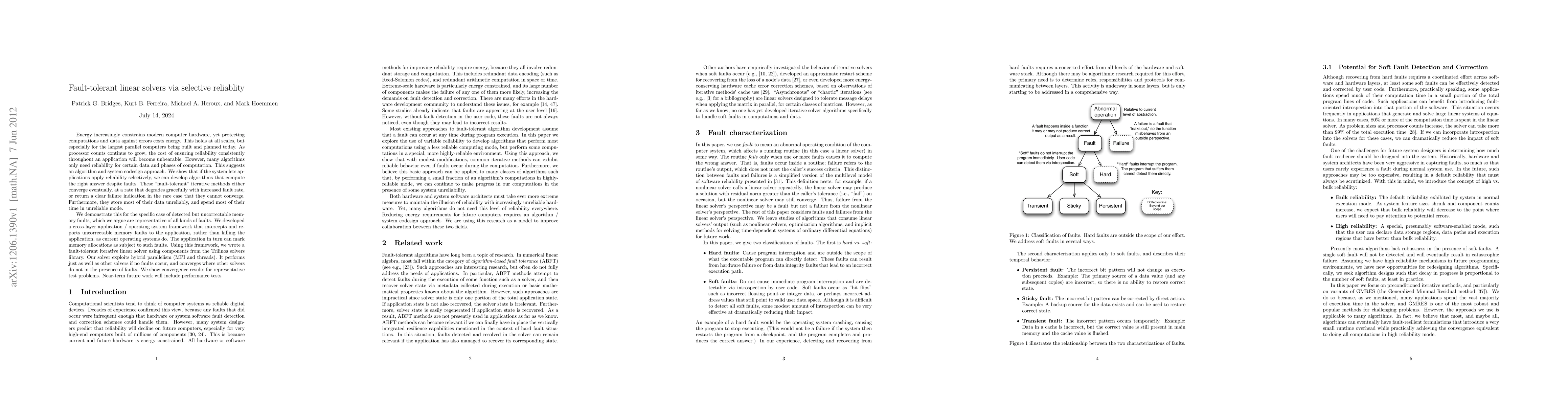 Energy increasingly constrains modern computer hardware, yet protecting computations and data against errors costs energy. This holds at all scales, but especially for the largest parallel computers being built and planned today. As processor counts continue to grow, the cost of ensuring reliability consistently throughout an application will become unbearable. However, many algorithms only need reliability for certain data and phases of computation. This suggests an algorithm and system codesign approach. We show that if the system lets applications apply reliability selectively, we can develop algorithms that compute the right answer despite faults. These "fault-tolerant" iterative methods either converge eventually, at a rate that degrades gracefully with increased fault rate, or return a clear failure indication in the rare case that they cannot converge. Furthermore, they store most of their data unreliably, and spend most of their time in unreliable mode. We demonstrate this for the specific case of detected but uncorrectable memory faults, which we argue are representative of all kinds of faults. We developed a cross-layer application / operating system framework that intercepts and reports uncorrectable memory faults to the application, rather than killing the application, as current operating systems do. The application in turn can mark memory allocations as subject to such faults. Using this framework, we wrote a fault-tolerant iterative linear solver using components from the Trilinos solvers library. Our solver exploits hybrid parallelism (MPI and threads). It performs just as well as other solvers if no faults occur, and converges where other solvers do not in the presence of faults. We show convergence results for representative test problems. Near-term future work will include performance tests.